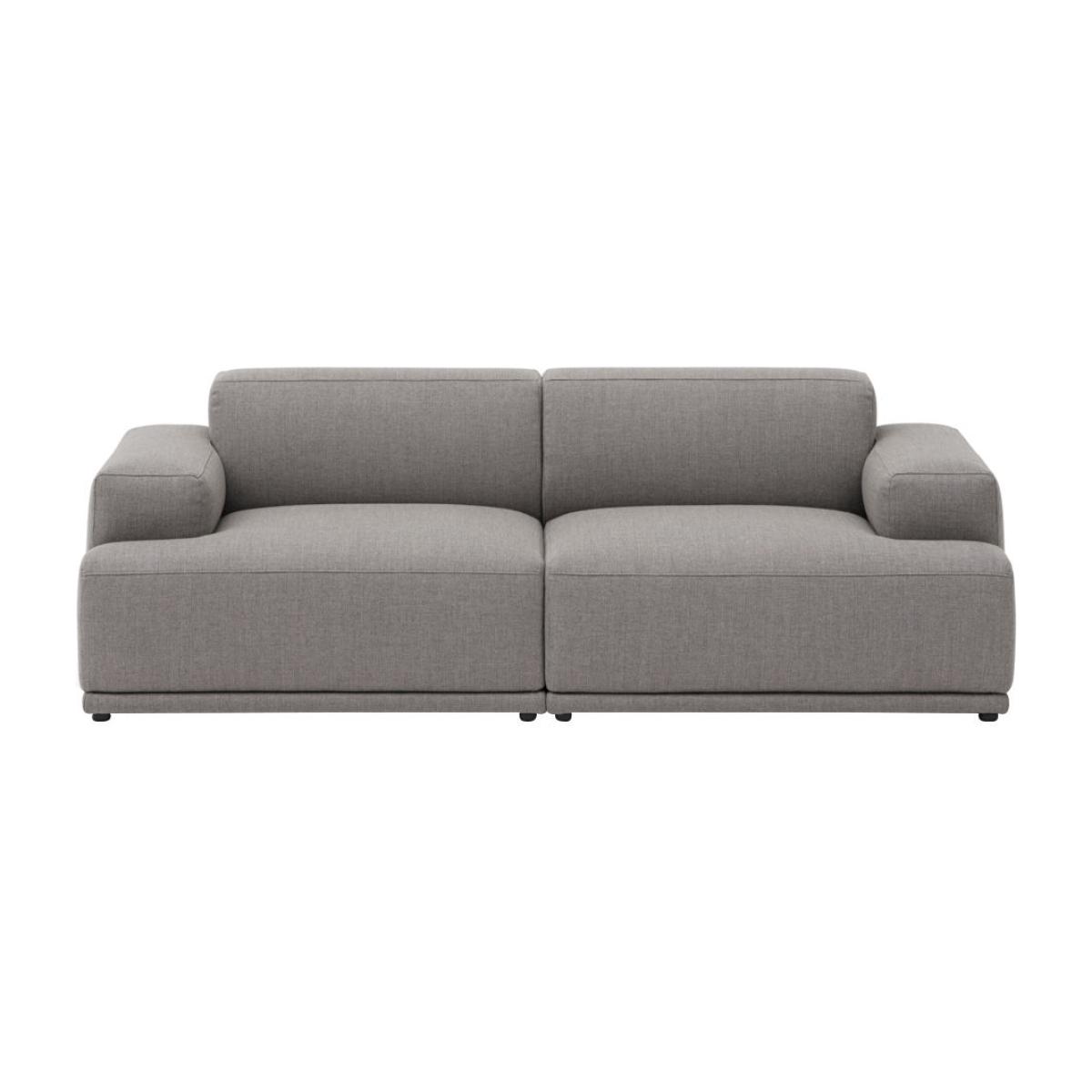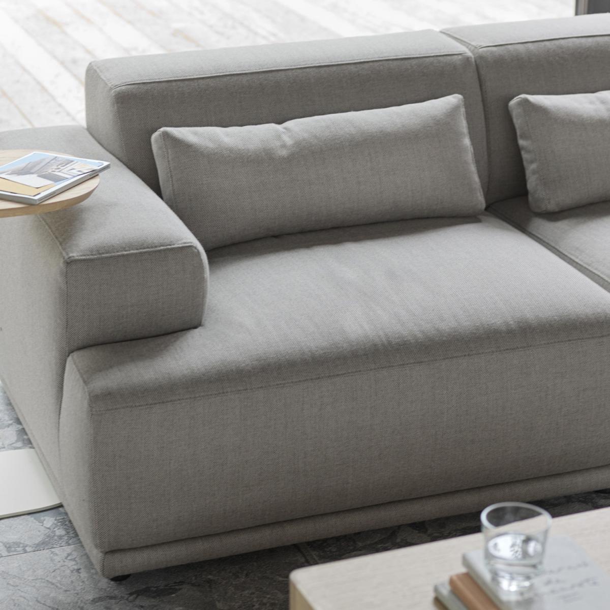 The Connect Soft modular sofa combines elegant and geometric proportions with deeply inviting comfort. With its meticulous forms, its corners bursting with character, and its intrinsically snuggly seat, the Connect Soft modular sofa constitutes the heart of any space, whilst it modularity allows its user to adapt the design to their taste and space. The richness of the materials, the demanding quality requirements and the exceptional finishes of the Connect sofa reflect the spirit of the Muuto brand. This sofa consists of two modules attached to each other via metal connecting elements. The generous padding guarantees excellent and durable sitting comfort. The sofa’s simple, clean-cut lines spotlight the high quality of the covering, which is crafted from a superb Kvadrat fabric. The Connect collection includes a multitude of modules. You have the option of completing your sofa by buying other modules separately: please ask us.