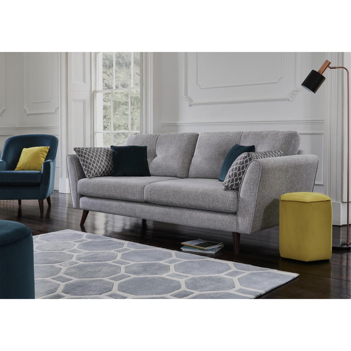 I love this yellow two-seater because of its cheerful colour and timeless design, which adds a sense of warmth and personality to any living space. It works particularly well in neutral, understated interiors where the pop of colour can lift the room, or in mid-century modern schemes that celebrate clean lines and simplicity. To style it effectively, consider pairing with crisp white or grey cushions for balance, as well as adding textured throws or rugs to create a cosy, inviting feel. Its practical fabric makes it suitable for everyday use, while the classic shape ensures it remains a versatile piece that can adapt as your interior style evolves.