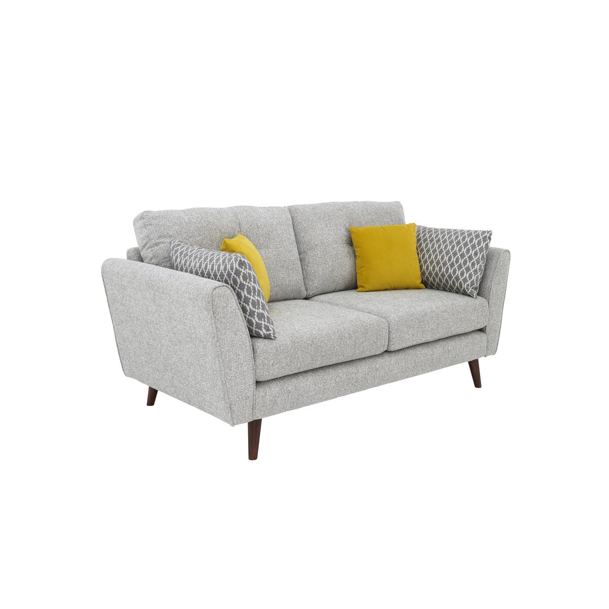 The perfect compact sofa, the Connection 2 seater classic back fabric sofa brings cool style to the smallest living space. Sized for contemporary living, this sofa has plenty of stylish mid-century modern features that include curved arms with neat piping, wooden tapered legs, buttoned back cushions and fabric upholstery. Choose from a range of fabrics for the upholstery, and accessorise with the complementary two scatter and two bolster cushions in your choice of coordinating fabric. Additional scatter and bolster cushions are available separately.