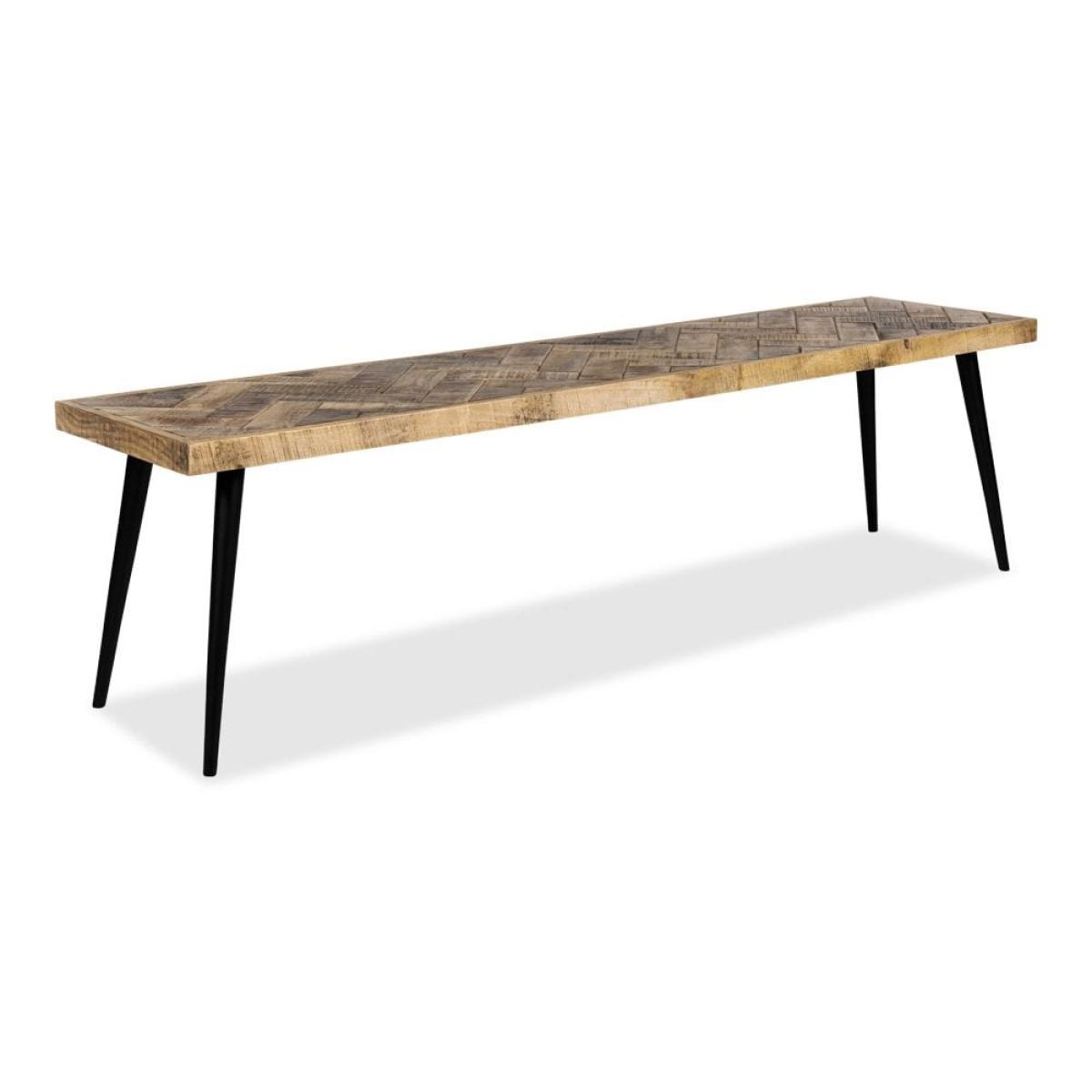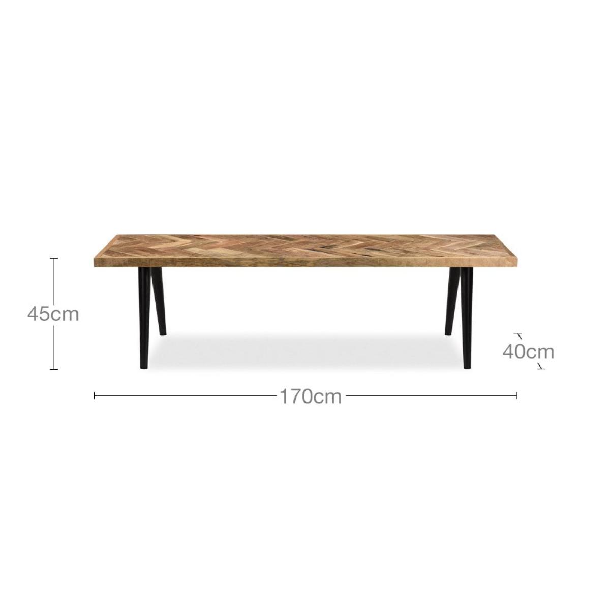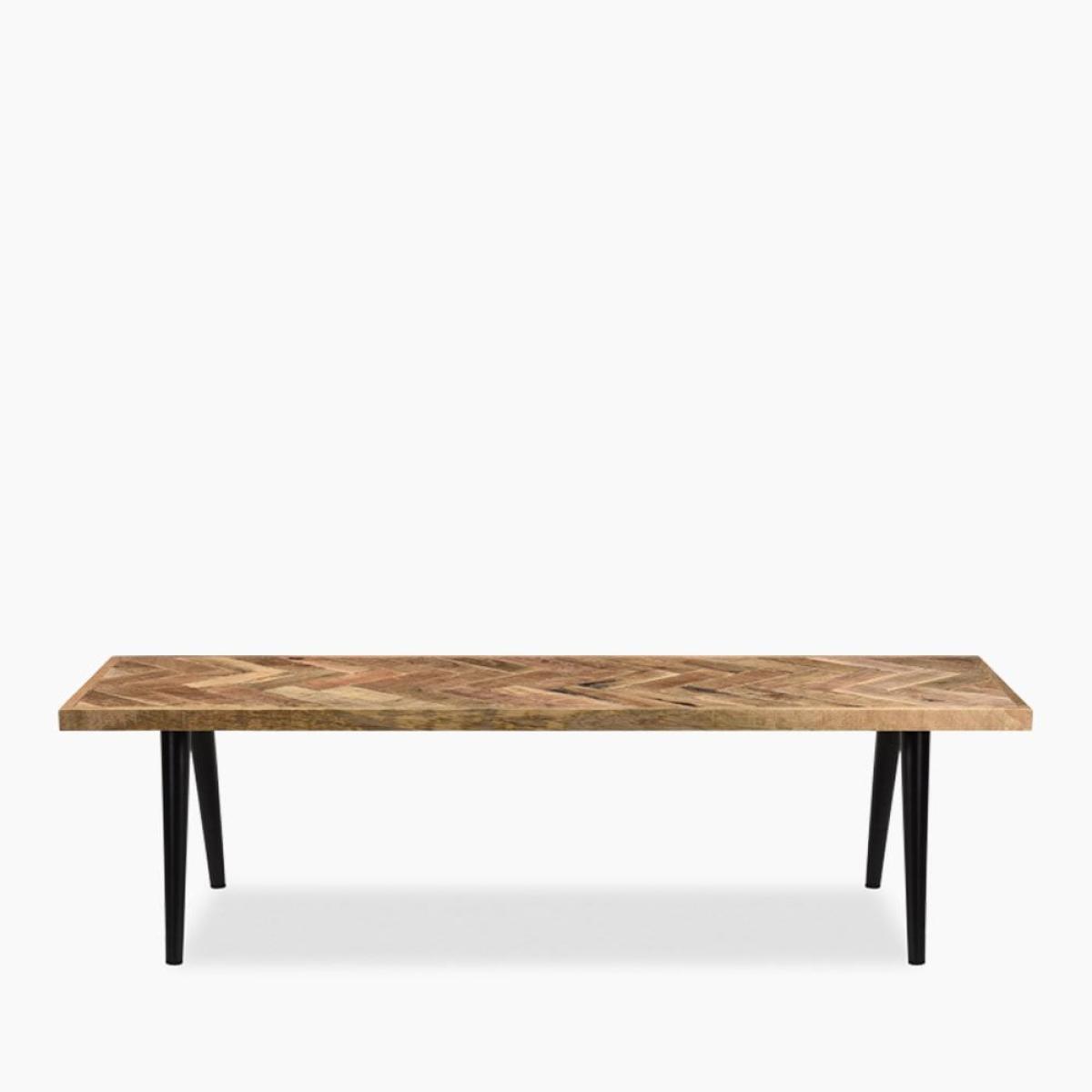 This Conner Scandi-inspired large dining bench is sure to make a statement in any dining room, living room or hallway setting. We love the light, mango wood seat top with herringbone design, and those sleek angled black metal legs. Seating around the home just got more stylish. This product is handcrafted, making each piece unique with naturally occurring texture, pattern, and colour. The natural materials used makes this product special and unique to you. Mango trees reach maturity in approximately 15 years making them one of the fastest-growing hardwoods. Towards the end of these years, the tree produces less fruit and can be harvested for furniture, making use of the full lifecycle of the tree. Due to Mango Wood’s strength, it is also just as durable as solid woods. View The Conner Range
