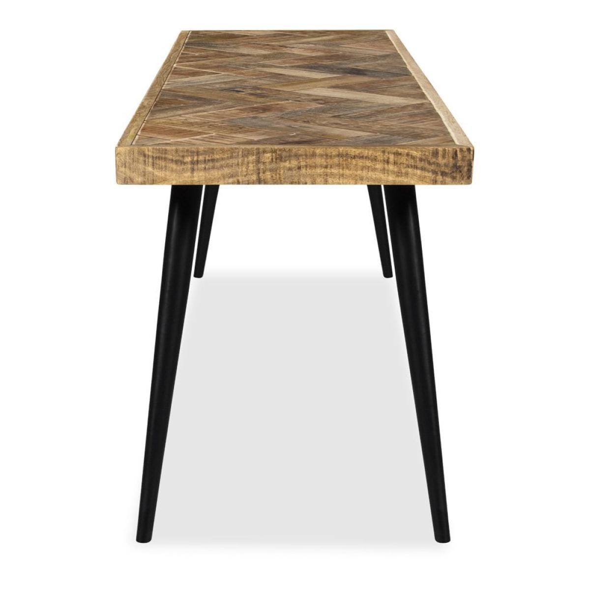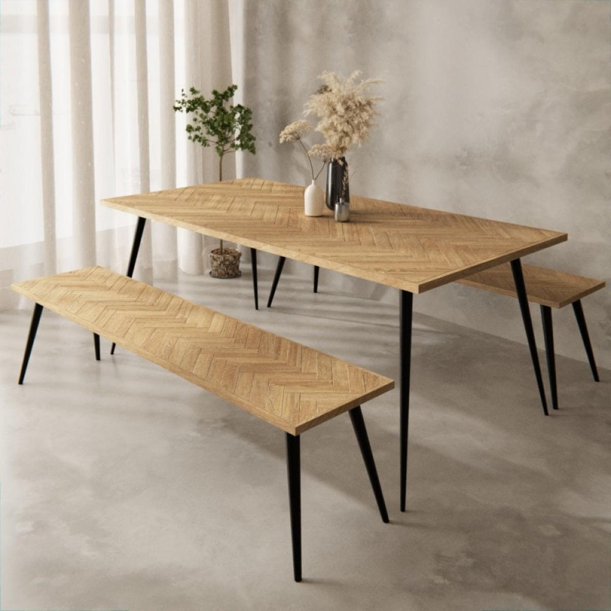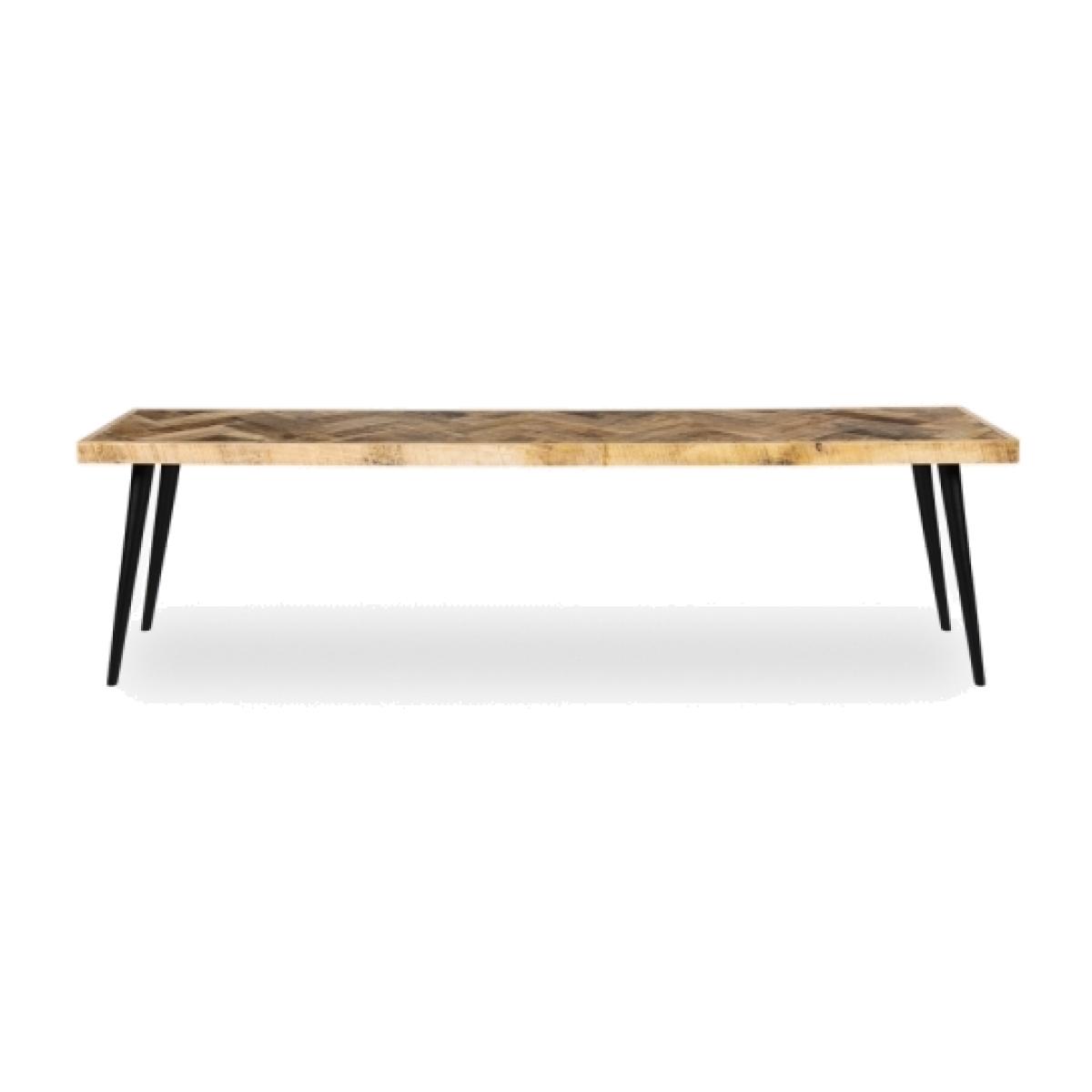This Conner Scandi-inspired large dining bench is sure to make a statement in any dining room, living room or hallway setting. We love the light, mango wood seat top with herringbone design, and those sleek angled black metal legs. Seating around the home just got more stylish. This product is handcrafted, making each piece unique with naturally occurring texture, pattern, and colour. The natural materials used makes this product special and unique to you. Mango trees reach maturity in approximately 15 years making them one of the fastest-growing hardwoods. Towards the end of these years, the tree produces less fruit and can be harvested for furniture, making use of the full lifecycle of the tree. Due to Mango Wood’s strength, it is also just as durable as solid woods. View The Conner Range
