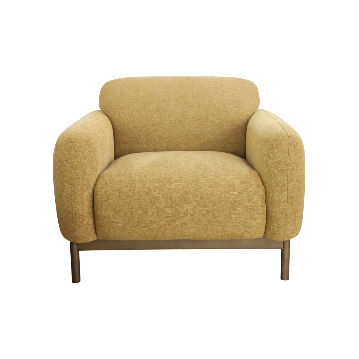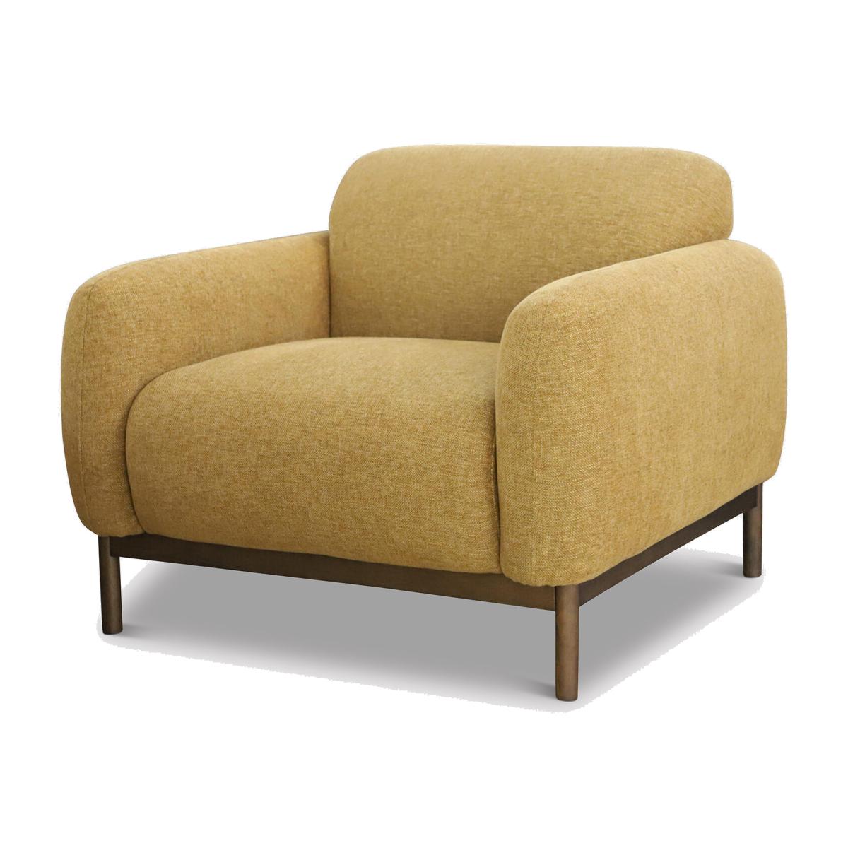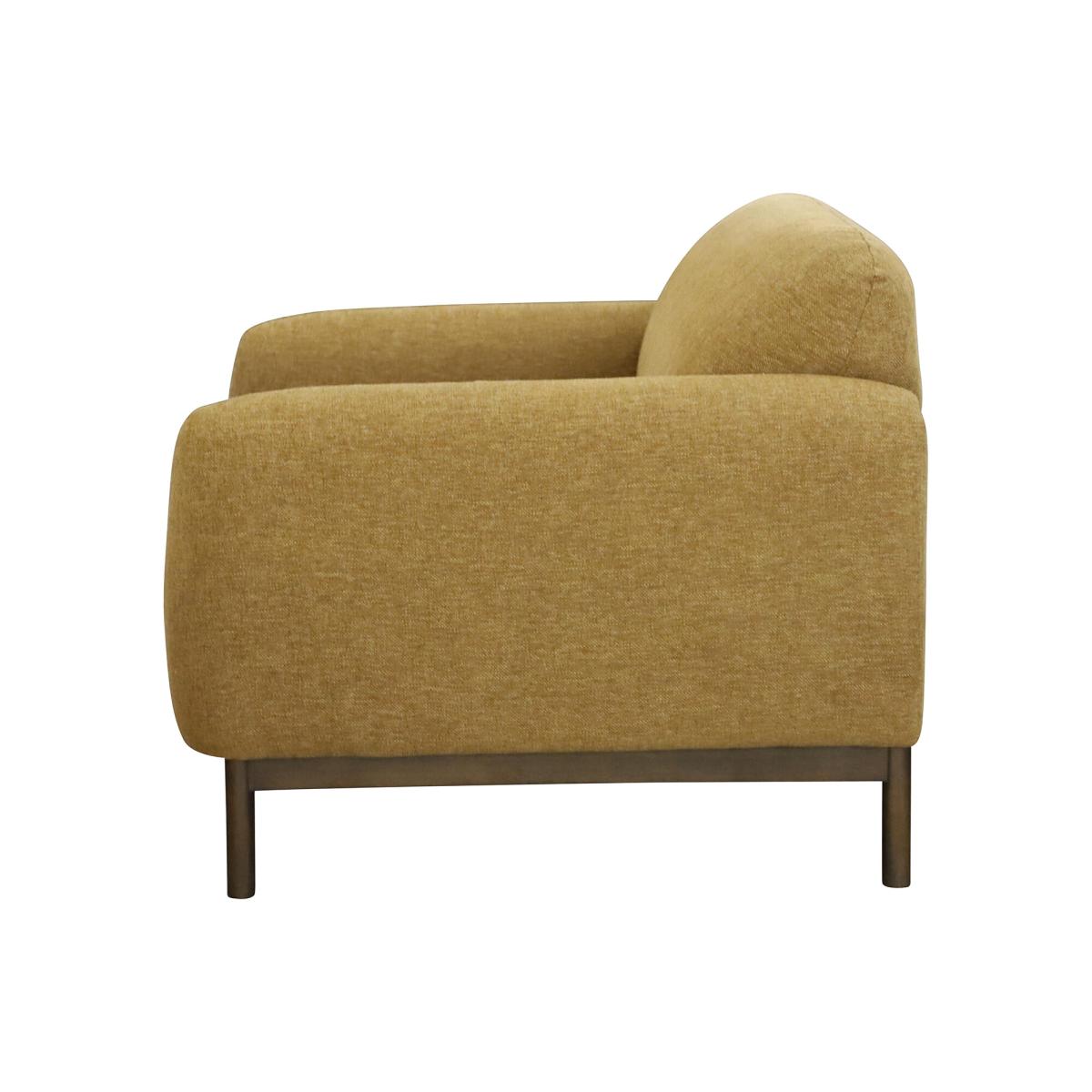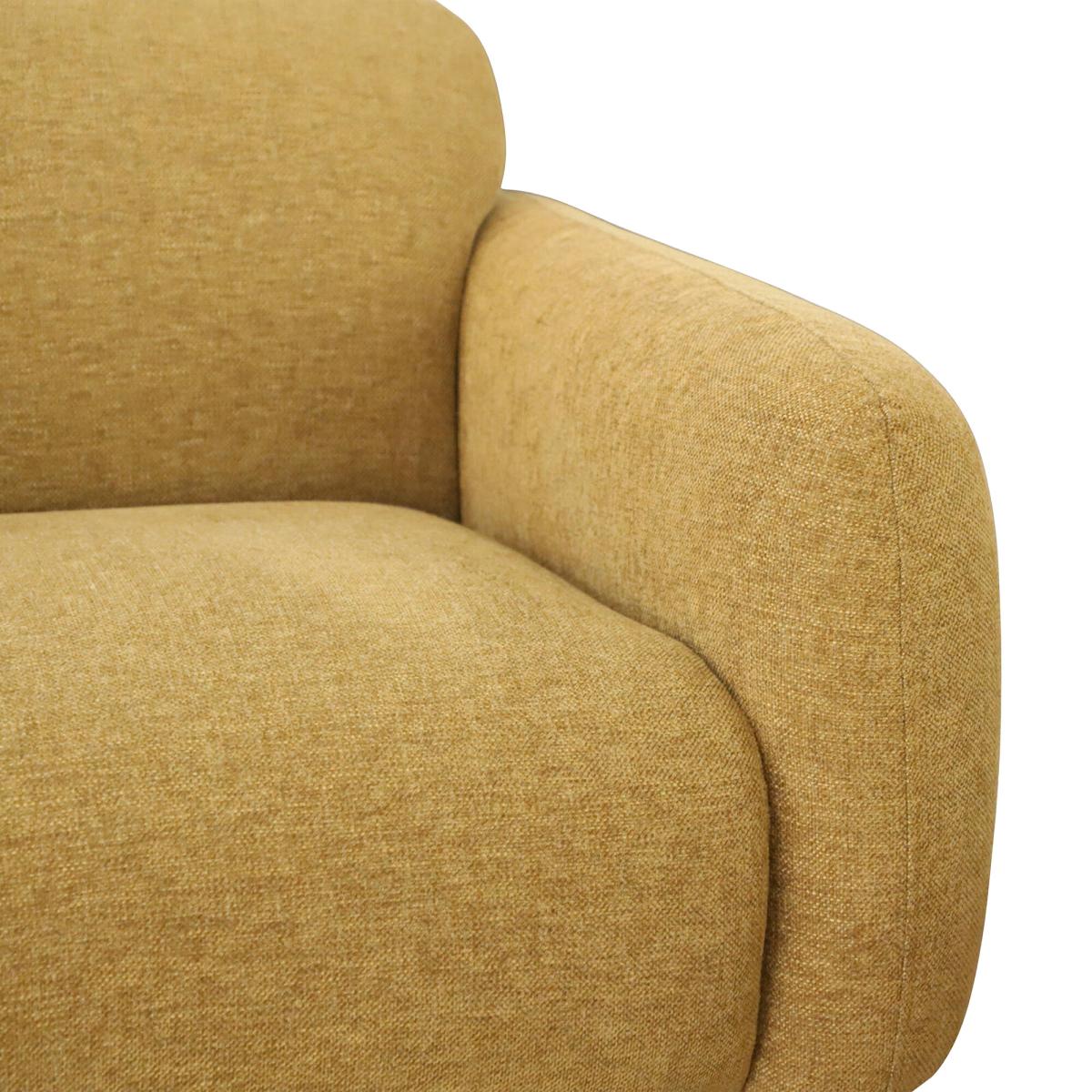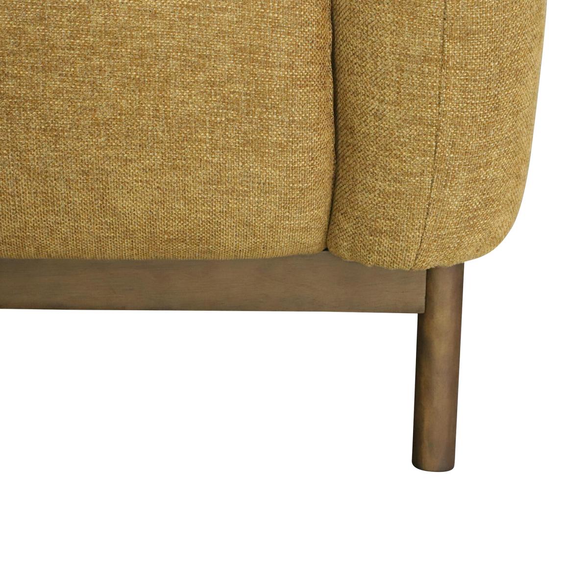 Brighten your space with our cheerful yellow 2-seater sofa. Featuring sturdy espresso wooden legs and a sleek timber plinth, this sofa combines style and support in one elegant design. Its soft, durable fabric invites relaxation, making it perfect for cosy conversations or quiet moments. Compact yet striking, it adds a pop of colour and a touch of sophistication to any room, effortlessly enhancing your decor while keeping comfort front and center.