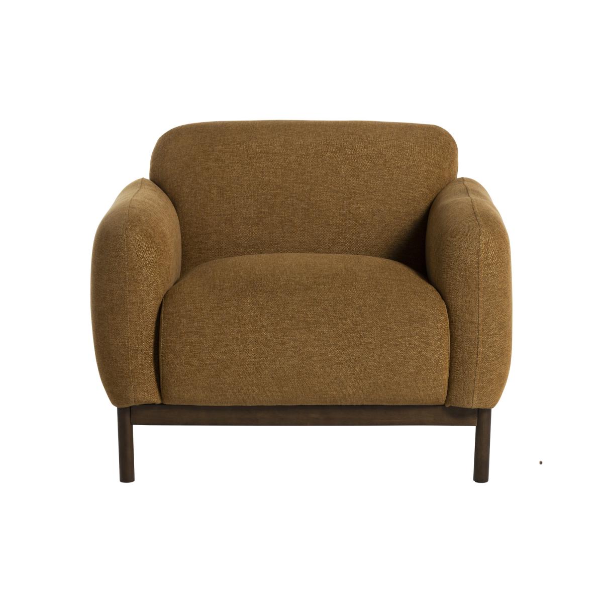 Add a warm, earthy touch to your room with our rust-coloured armchair. Featuring sturdy espresso wooden legs and a sleek timber plinth, this chair blends style and support in one elegant design. Its soft, durable fabric invites relaxation, making it perfect for reading, lounging, or enjoying quiet moments. Compact yet eye-catching, it brings a rich pop of colour and a hint of sophistication to any space, effortlessly enhancing your décor while keeping comfort front and centre.