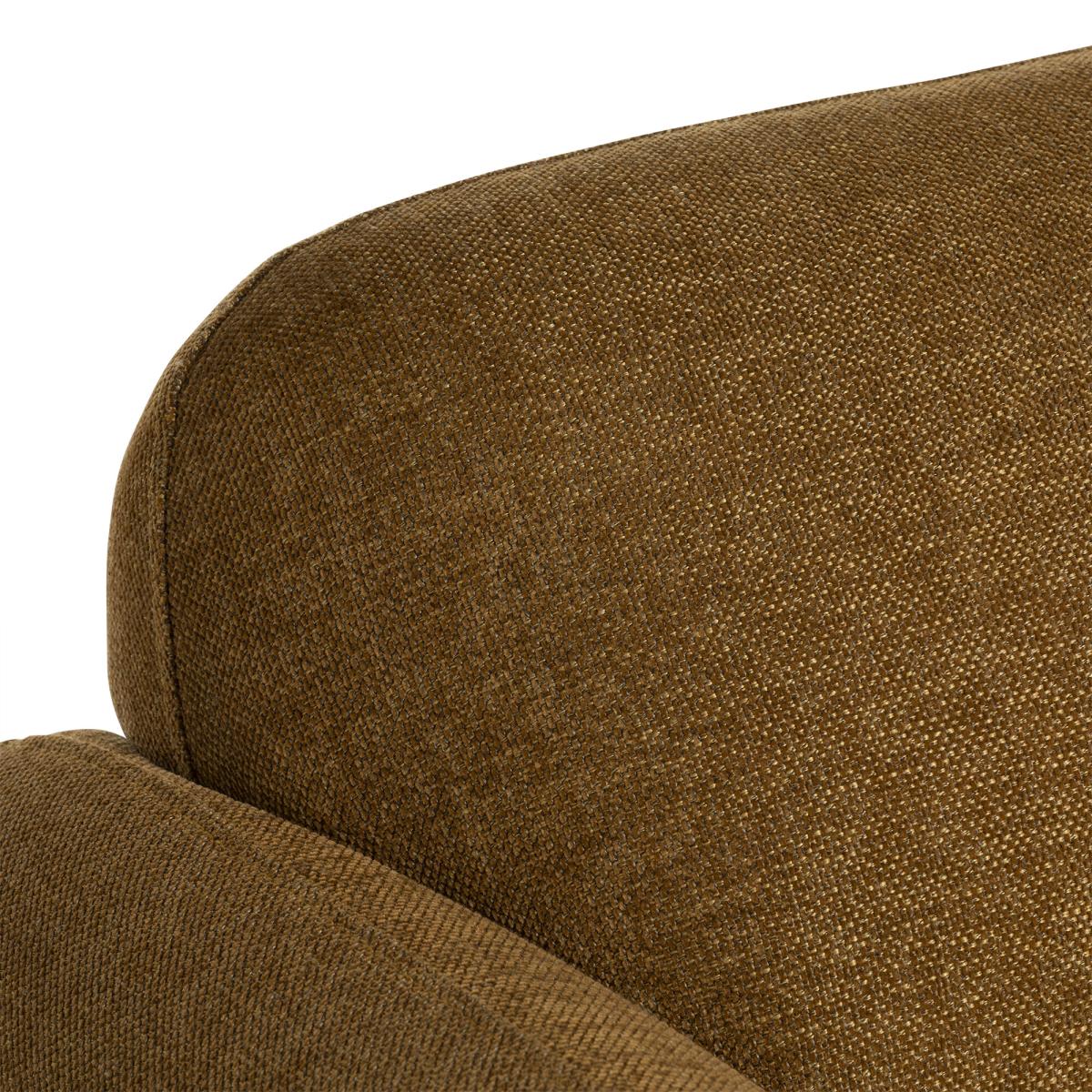 I love this armchair because of its warm yellow fabric, which instantly adds a cheerful and inviting touch to any interior. It works particularly well in neutral or earthy schemes, where it can serve as a statement piece without overwhelming the space. Its rounded, plush silhouette makes it both stylish and comfortable, ideal for relaxed seating areas or cosy corners. For styling tips, pair it with textured cushions or layered throws to add depth, and consider placing it alongside wood or black accents to create a balanced, modern look. It’s versatile enough to slot into living rooms, bedrooms, or even a chic reading nook, making it a practical yet characterful addition.