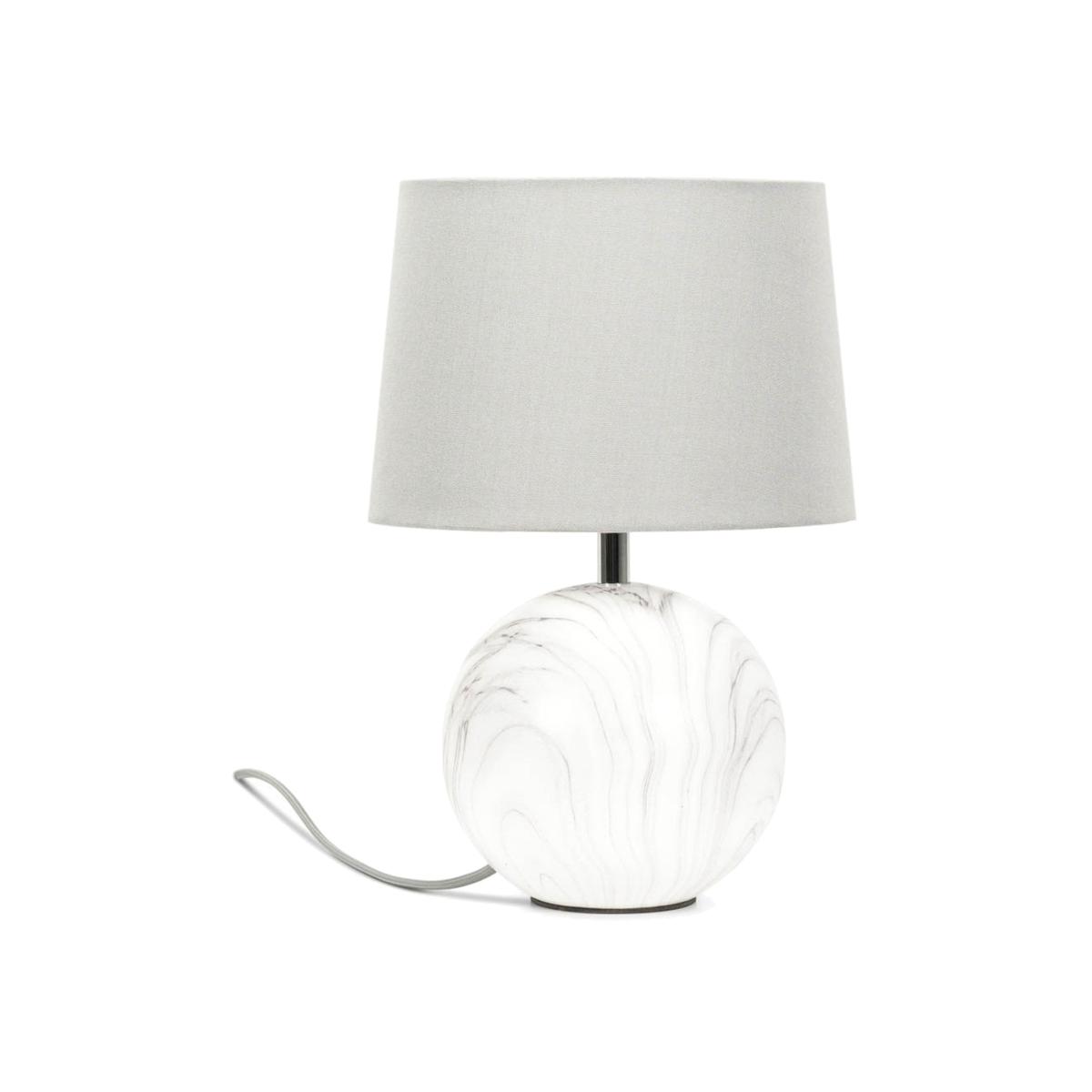 Minimalist but effective, this on-trend marble effect ceramic table lamp comes complete with a tapered fabric lampshade. Featuring a sphere shaped base and in-line on off rocker switch for easy use. Transform your room in seconds with this simple yet stylish design. The perfect choice for any modern home that loves a neutral palette.