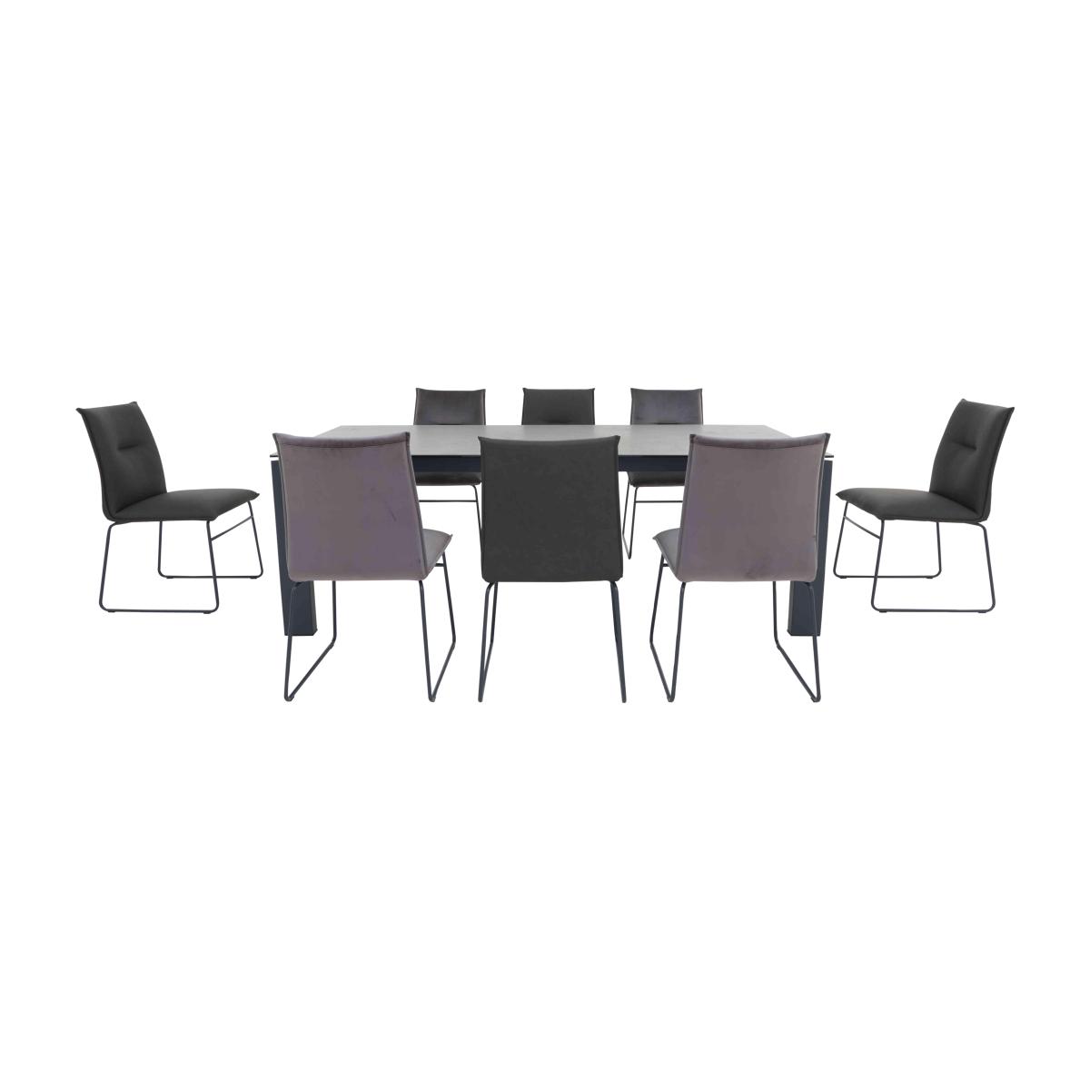 The essence of Italian cool, the contemporary Calligaris Gate collection features strong lines, gorgeous finishes and useful functionality. The range centres on a stunning Italian-made dining table that extends to seat ten with a high-precision rotating mechanism. The ceramic top, available in a choice of colours including Furniture Village-exclusive bronze, and black metal frame strike the perfect balance between style and practicality. Pair it with the stunning Calligaris Maya dining chair with ski-style legs or choose one of our ready-made dining sets. Part of the Connubia by Calligaris collection. Bold finishes and luxe textures meet and create something beautiful in this Connubia by Calligaris dining set. The extending dining table is exclusive to Furniture Village. Why you'll love it. Sleek Italian style meets cool industrial finish in this on-trend dining set. Bold contemporary design. Extending dining table has a hardwearing ceramic top in lead grey. Furniture Village-exclusive matt grey metal frame and legs. High-precision rotating extension mechanism reveals pattern-matched leaf. For dining comfort, legs remain at the table corners when extended. Set includes 8 Maya dining chairs with black metal ski-style legs. 4 are upholstered in soft velvet, 4 in lightly distressed faux leather. Made in Italy. This dining set is part of the Connubia by Calligaris Gate range. What you need to know. Table top is made of ceramic coupled to glass. Table has metal frame and legs. Chair seat cushioning is made of foam. Chair frame is made of metal. Extra-large 220 cm dining table seats 10, and 12 when extended. Ceramic finish is highly resistant to scratches, impact, heat and chemical substances. Not 100% heatproof. Please use coasters and placemats at all times. Easy to care for. Simply wipe with a clean damp cloth. Flattening and shading of heavy wear areas on velvet is unavoidable. Pile fabrics may be vacuumed lightly using the curtain attachment. Brush regularly in the direction of the pile with a soft brush.