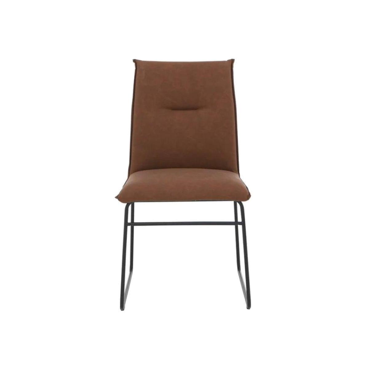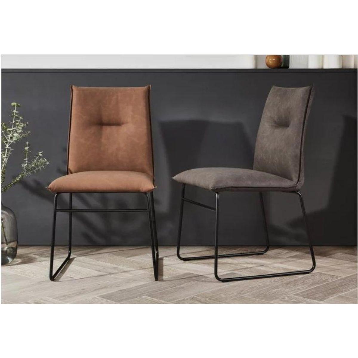 Delivery 7-14 DaysColour - TabaccoEqually at home in a formal dining room and contemporary kitchen diner, this very cool velvet dining chair is a Furniture Village exclusive. Made in Italy. Why you'll love it Statement dining chair is the essence of cool Italian style. Bold contemporary design. Tubular metal ski-style frame in black. Upholstered in faux leather with a lightly distressed vintage texture. Pinched seams along the edges of the seat and backrest. Horizontal groove in the centre back. Exclusively available at Furniture Village. Made in Italy. What you need to know Seat cushioning is made of foam. Metal frame.