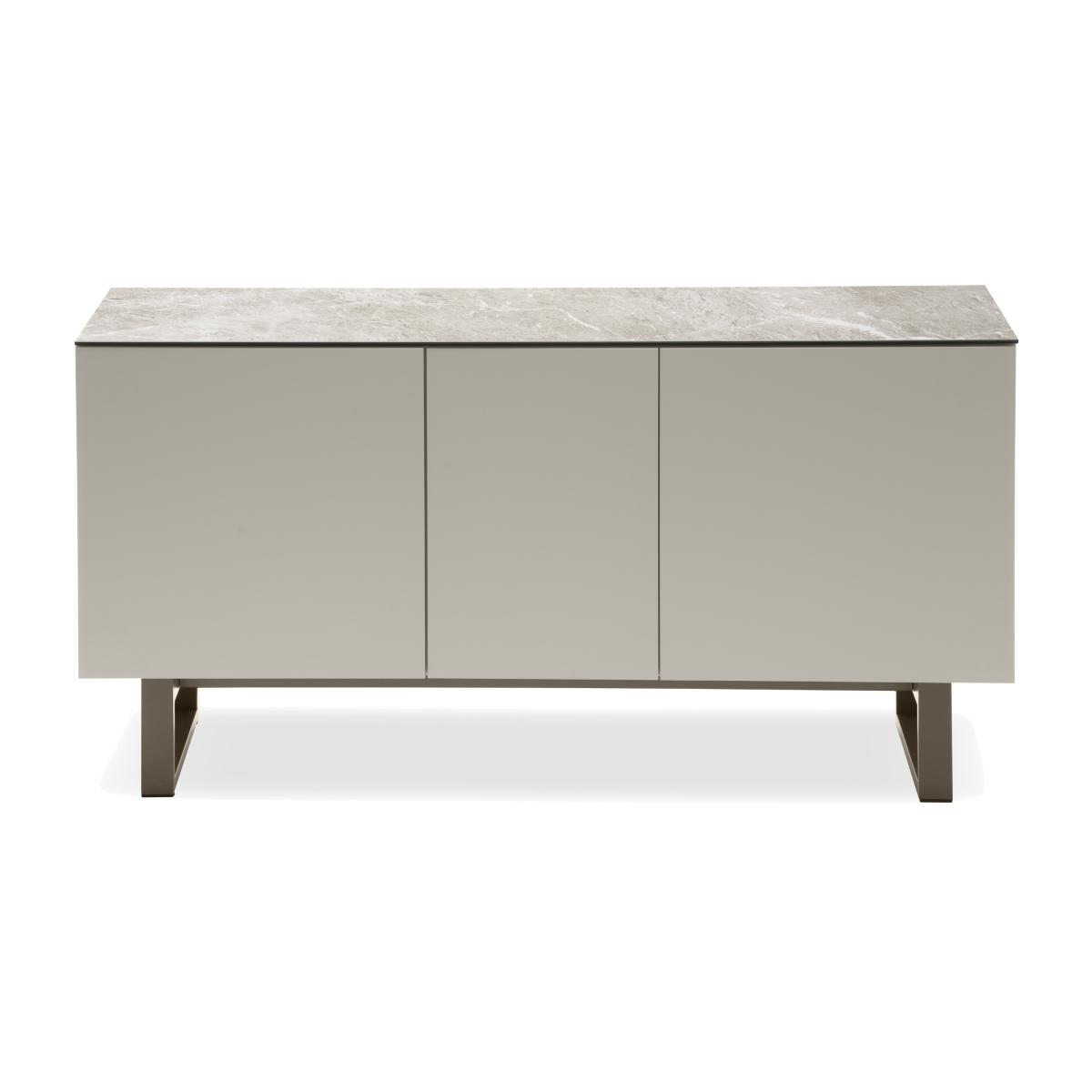 Sleek and stylish, this three-door sideboard with a ceramic top is eminently customisable. Choose a finish for the top, frame and legs and enjoy dining room storage that’s designed by you. Made in Italy. Why you'll love it Stylish storage that’s completely customisable. By Connubia, mastercrafters of modern Italian furniture. Love this 3-door sideboard? Make it bespoke. The perfectly patterned ceramic top is available in 6 finishes. Choose from 2 colours for the frame. Metal U-shaped legs in 2 colours. Spacious interior with 3 sturdy tempered glass shelves. Beautifully crafted with soft-closing cupboard doors. Durable ceramic finish is ideal for family homes as well as elegant spaces. Compact dining room? The range includes a smaller 2-door sideboard. Made in Italy. This 3-door sideboard is part of the Connubia Dalia range. What you need to know Ceramic top. Metal legs. The ceramic finish is highly resistant to scratches, impact, heat and chemical substances. Not 100% heatproof. Please use coasters and placemats at all times. Easy to care for. Simply wipe with a clean damp cloth. WARNING!