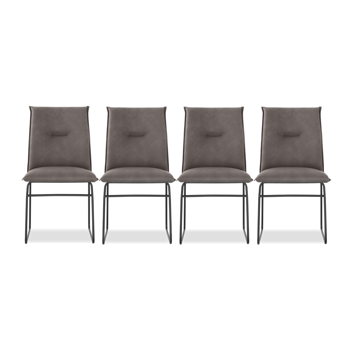 Relaxed, elegant and very chic, this set of four dining chairs with black metal ski-style legs brings cool style to any dining space. By Connubia. Why you'll love it Bring home cool style with this set of 4 statement dining chairs. Bold and contemporary Italian design. Ski-style legs are made of tubular metal with a black finish. Upholstered in faux leather or fabric. Pinched seams along the edges of the seats and backrests. Horizontal groove in the centre back. Also available in sets of 2 and 6. This set of 4 dining chairs is part of our Connubia collection. What you need to know Seat cushioning is made of foam. Metal frames.