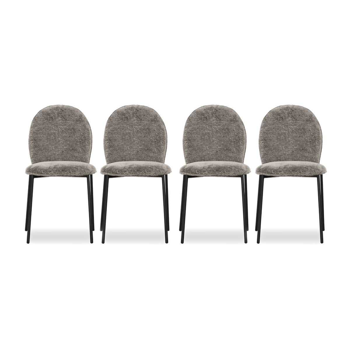 Wonderfully comfy and so very stylish, this set of four dining chairs with black metal legs makes any dining room more elegant. Italian design by Connubia. Why you'll love it Elegant dining room style for modern homes. Chairs have beautifully curved and cushioned backs and seats. Black metal legs. Upholstered in faux leather or fabric. Also available in sets of 2 and 6. Designed in Italy. This set of 4 dining chairs is part of our Connubia collection. What you need to know Foam cushioning.