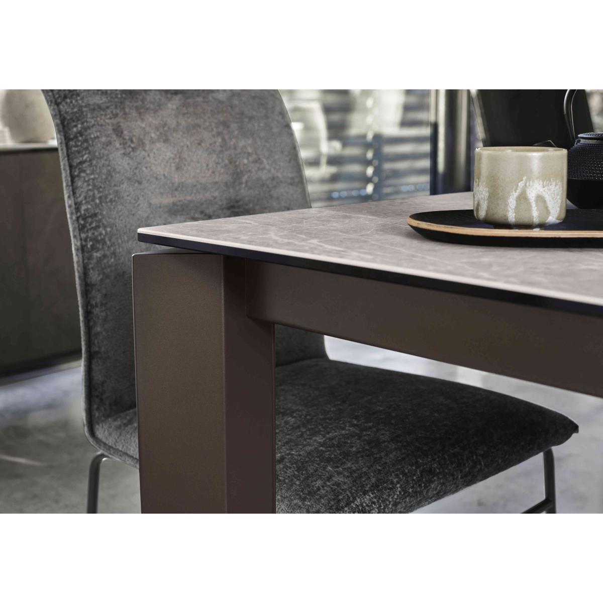 With a choice of colours for its ceramic top and metal legs and a high-tech extension mechanism, the highly customisable Connubia Viola dining table delivers sleek Italian style. In four sizes. Why you'll love it Contemporary design, high performance, seamless finish. By Connubia, mastercrafters of modern Italian furniture. This beautifully crafted extending dining table is simply stunning. Perfectly patterned ceramic top in a choice of 6 fashionable colours. And with 2 colour finishes for the metal legs, you can really make this dining table bespoke. High-precision rotating extension mechanism produces an extra leaf from the table. Extended or closed, table legs stay at the corners for the comfort of your guests. Designed to be enjoyed every day – ceramic is exceptionally hardwearing. Choose from 4 sizes of dining table. Made in Italy. This extending dining table is part of the Connubia Viola range. What you need to know Table top is made of ceramic coupled to glass. Metal frame and legs. Small 130 cm dining table seats 6, and 8 when extended. Medium 160 cm dining table seats 8, and 10 when extended. Large 180 cm dining table seats 8, and 10 when extended. Extra large 220 cm dining table seats 10, and 12 when extended. When this table is extended, there will be a very small gap between the extra leaf and the table top. The ceramic finish is highly resistant to scratches, impact, heat and chemical substances. Not 100% heatproof. Please use coasters and placemats at all times. Easy to care for. Simply wipe with a clean damp cloth.