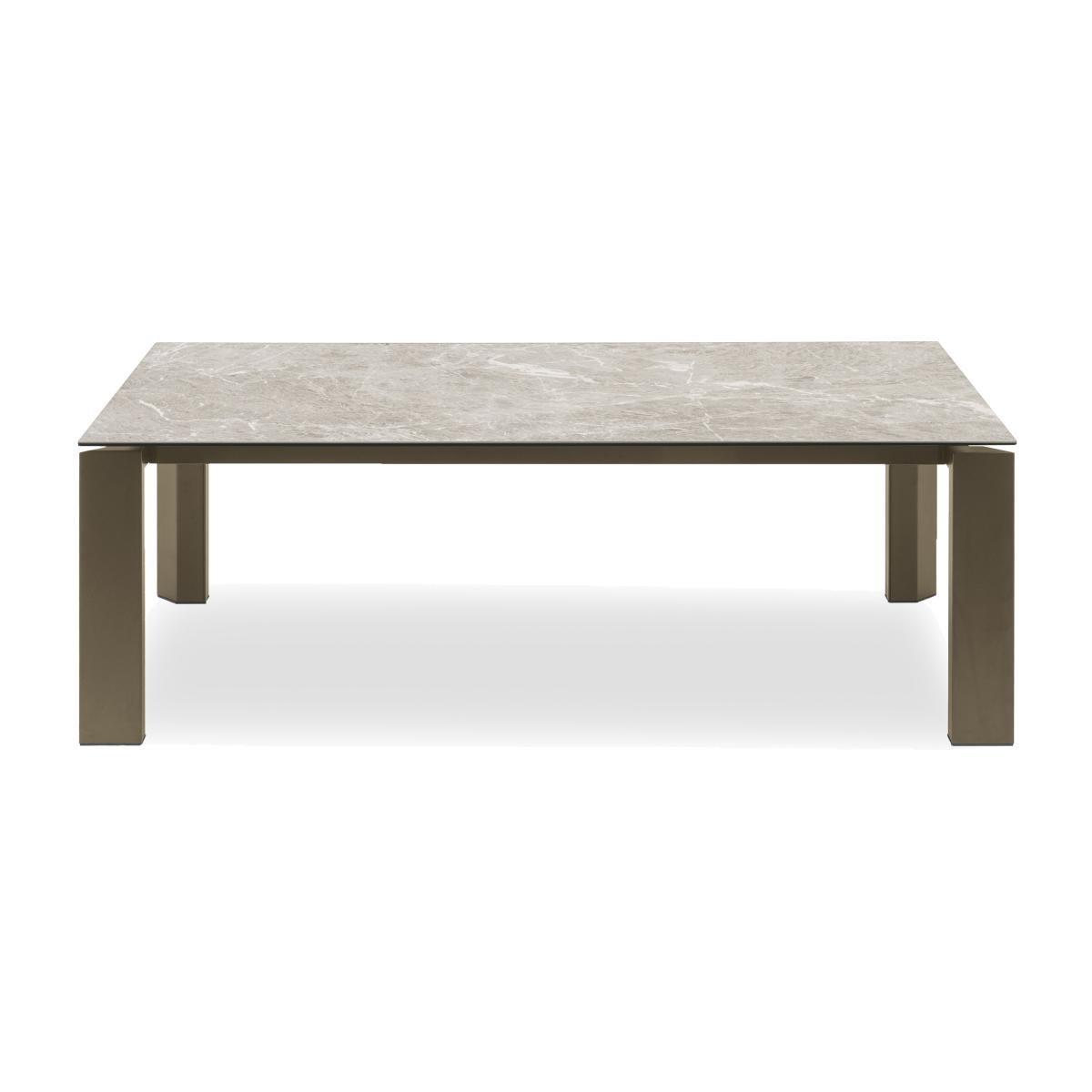 With a choice of colours for its ceramic top and metal legs and a high-tech extension mechanism, the highly customisable Connubia Viola dining table delivers sleek Italian style. In four sizes. Why you'll love it Contemporary design, high performance, seamless finish. By Connubia, mastercrafters of modern Italian furniture. This beautifully crafted extending dining table is simply stunning. Perfectly patterned ceramic top in a choice of 6 fashionable colours. And with 2 colour finishes for the metal legs, you can really make this dining table bespoke. High-precision rotating extension mechanism produces an extra leaf from the table. Extended or closed, table legs stay at the corners for the comfort of your guests. Designed to be enjoyed every day – ceramic is exceptionally hardwearing. Choose from 4 sizes of dining table. Made in Italy. This extending dining table is part of the Connubia Viola range. What you need to know Table top is made of ceramic coupled to glass. Metal frame and legs. Small 130 cm dining table seats 6, and 8 when extended. Medium 160 cm dining table seats 8, and 10 when extended. Large 180 cm dining table seats 8, and 10 when extended. Extra large 220 cm dining table seats 10, and 12 when extended. When this table is extended, there will be a very small gap between the extra leaf and the table top. The ceramic finish is highly resistant to scratches, impact, heat and chemical substances. Not 100% heatproof. Please use coasters and placemats at all times. Easy to care for. Simply wipe with a clean damp cloth.