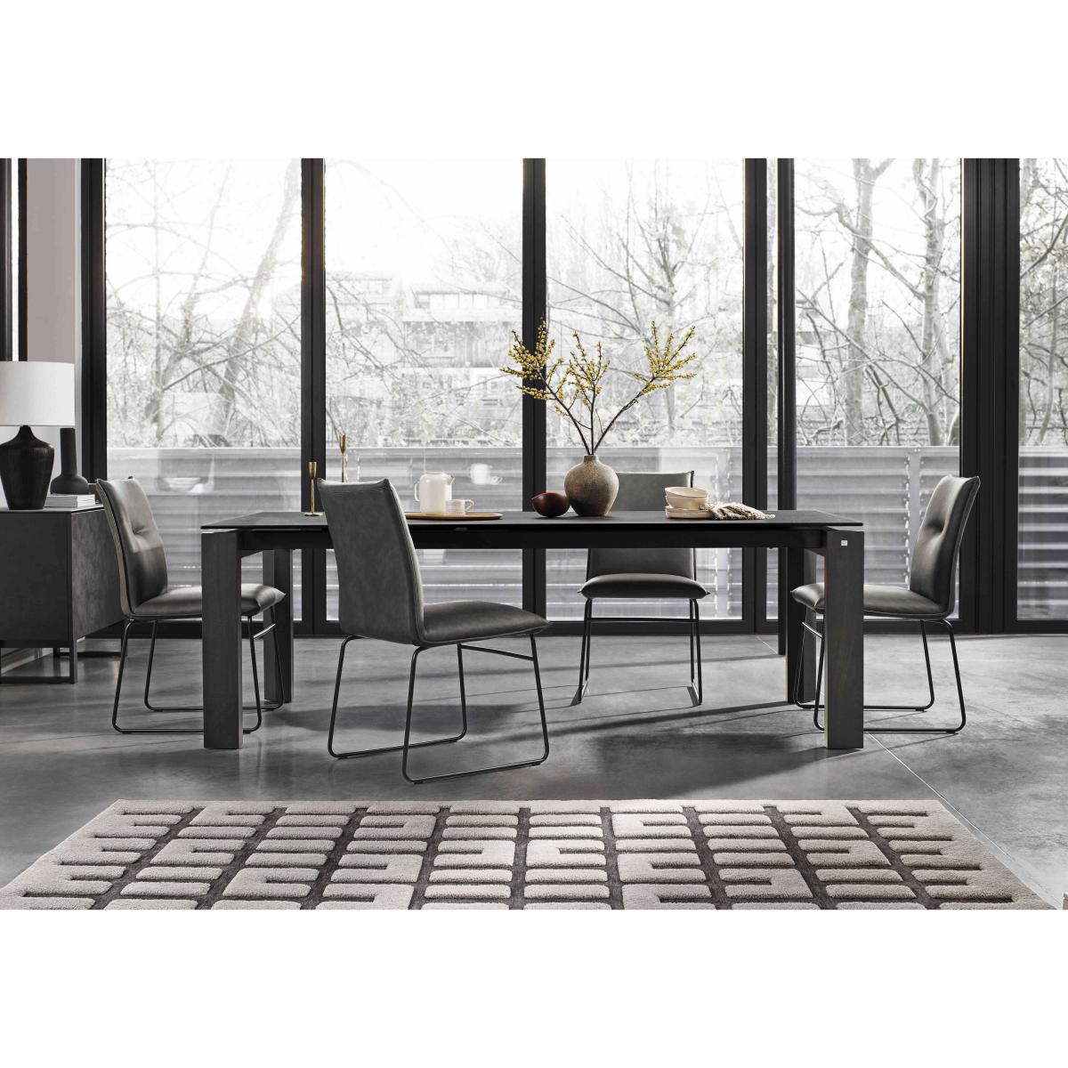This beautiful Italian dining table offers understated contemporary style and is entirely customisable with a wide choice of colour options for the ceramic top and wooden legs. In four sizes. Why you'll love it Contemporary design, high performance, seamless finish. By Connubia, mastercrafters of modern Italian furniture. This beautifully crafted extending dining table is simply stunning. Perfectly patterned ceramic top in a choice of 6 fashionable colours. And with 2 colour finishes for the wood legs, you can really make this dining table bespoke. High-precision rotating extension mechanism produces an extra leaf from the table. Extended or closed, table legs stay at the corners for the comfort of your guests. Designed to be enjoyed every day – ceramic is exceptionally hardwearing. Choose from 4 sizes of dining table. Made in Italy. This extending dining table is part of the Connubia Viola range. What you need to know Table top is made of ceramic coupled to glass. Wooden frame and legs. Small 130 cm dining table seats 6, and 8 when extended. Medium 160 cm dining table seats 8, and 10 when extended. Large 180 cm dining table seats 8, and 10 when extended. Extra large 220 cm dining table seats 10, and 12 when extended. When this table is extended, there will be a very small gap between the extra leaf and the table top. The ceramic finish is highly resistant to scratches, impact, heat and chemical substances. Not 100% heatproof. Please use coasters and placemats at all times. Easy to care for. Simply wipe with a clean damp cloth.