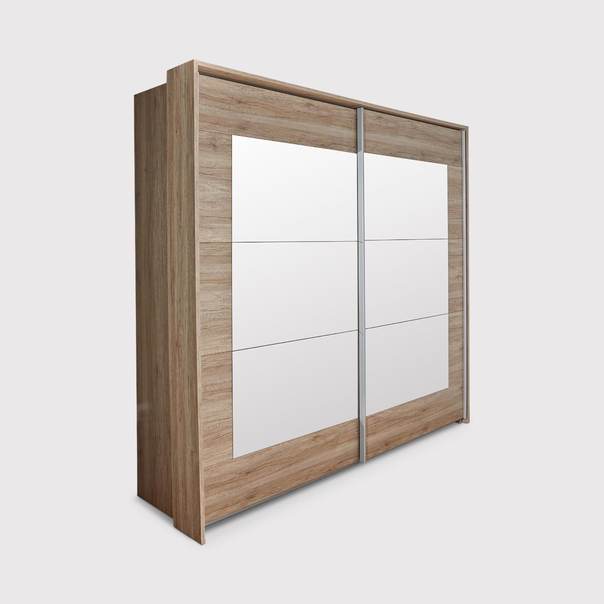 I’m a fan of this sliding wardrobe for its clean-lined oak effect and inset mirror panels, which both brighten and visually expand a bedroom. It sits well in Scandinavian, minimalist or contemporary schemes, but equally complements soft industrial accents when paired with darker metals. For practical styling, divide interiors with clear boxes or fabric bins to keep accessories tidy, and fit LED strip lights inside so you never lose sight of what’s tucked at the back. Top the unit with low-profile storage baskets or a row of coordinated boxes to maximise every inch of space without adding clutter.
