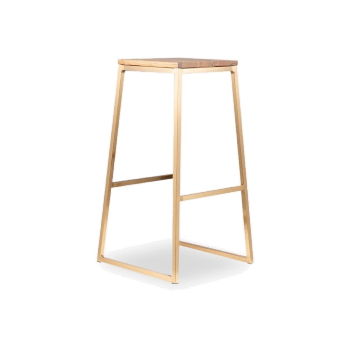 Add personality to your bar or kitchen area with the Consec Kitchen Stool. Featuring an elm wood seat and a metallic base, the Consec stool proves that contrast is the key to a stylish room. Choose from a range of heights, colours and metal finishes taking your bar and kitchen island to the next level. View The Consec Range Seat Material: Elm Wood Leg Material: Metal Care: Wipe with a dry cloth Note: Wooden furniture will vary in grain pattern, texture and colour. These natural qualities of the wood used makes this material unique and beautiful. Note: The industrial metal finish of gunmetal may result in slight colour differences due to the natural qualities of the material. Each piece is unique and may vary slightly from the imagery shown. Dimensions Total Size: H 66 x W 41 x D 41cm Seat Size: H 2 x W 31 x D 31cm. Buy your Consec Metal Kitchen Stool, Elm Wood Leg Colour: Brass from a wide range of Furniture, Chairs, Table & Bar Stools