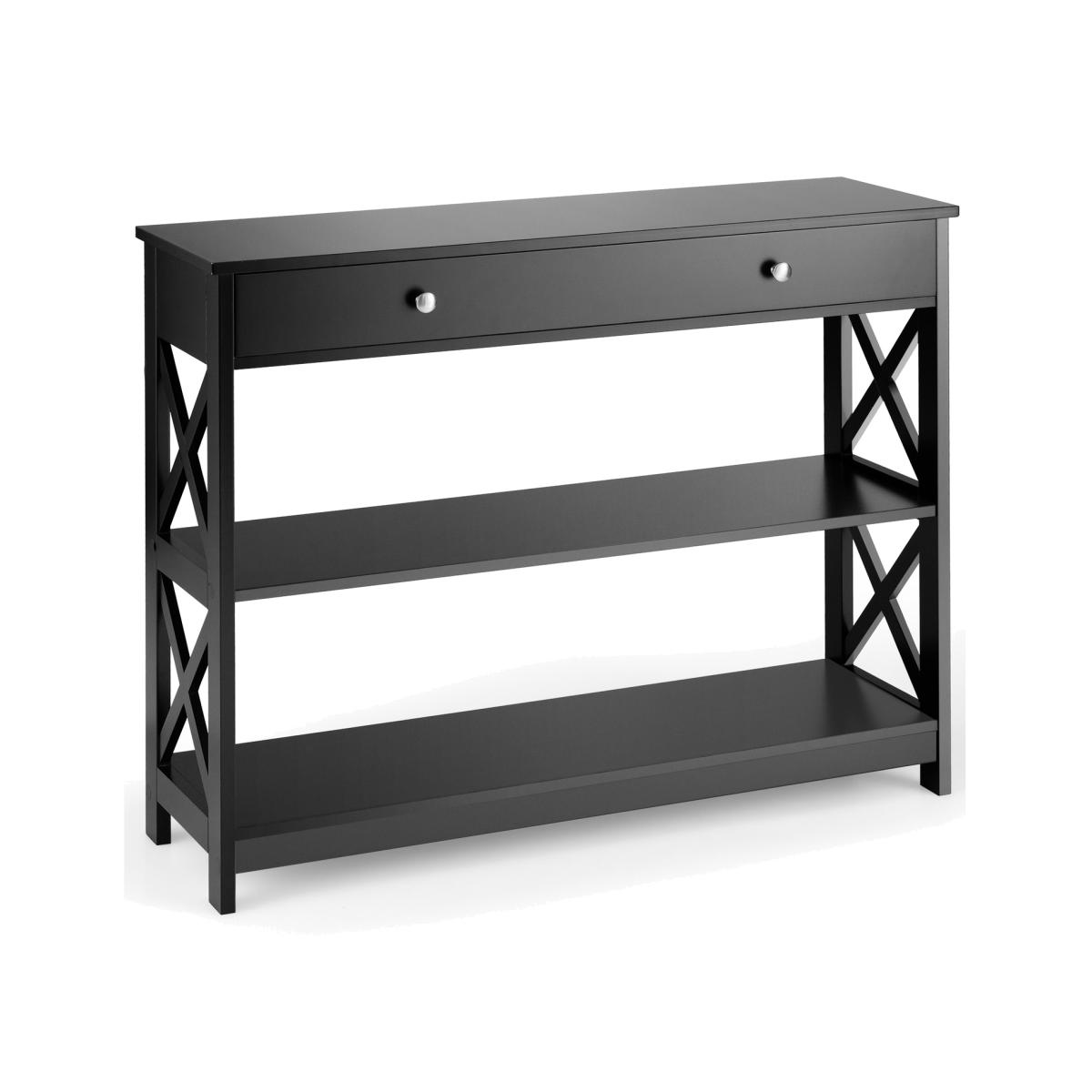 Are you still wasting time looking for keys when you go out? This 3-tier console table is the perfect solution for you! Designed with a spacious table, a large drawer and 2 storage shelves, this wooden sofa table comes with ample storage space for your belongings, such as keys, sunglasses, photo frames and more. Made of solid MDF with an odourless painting finish, this premium entryway table is durable and stable enough to hold up to 95kg.
