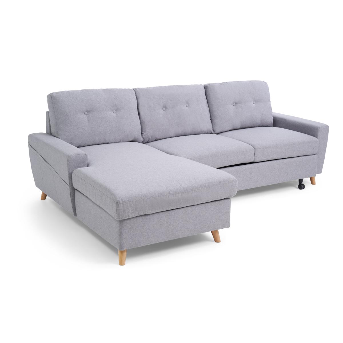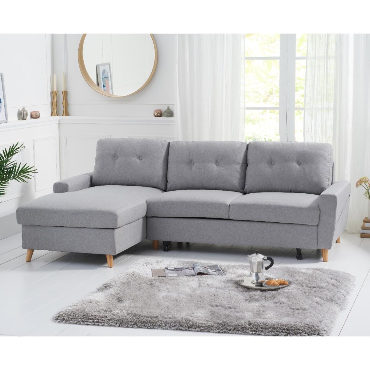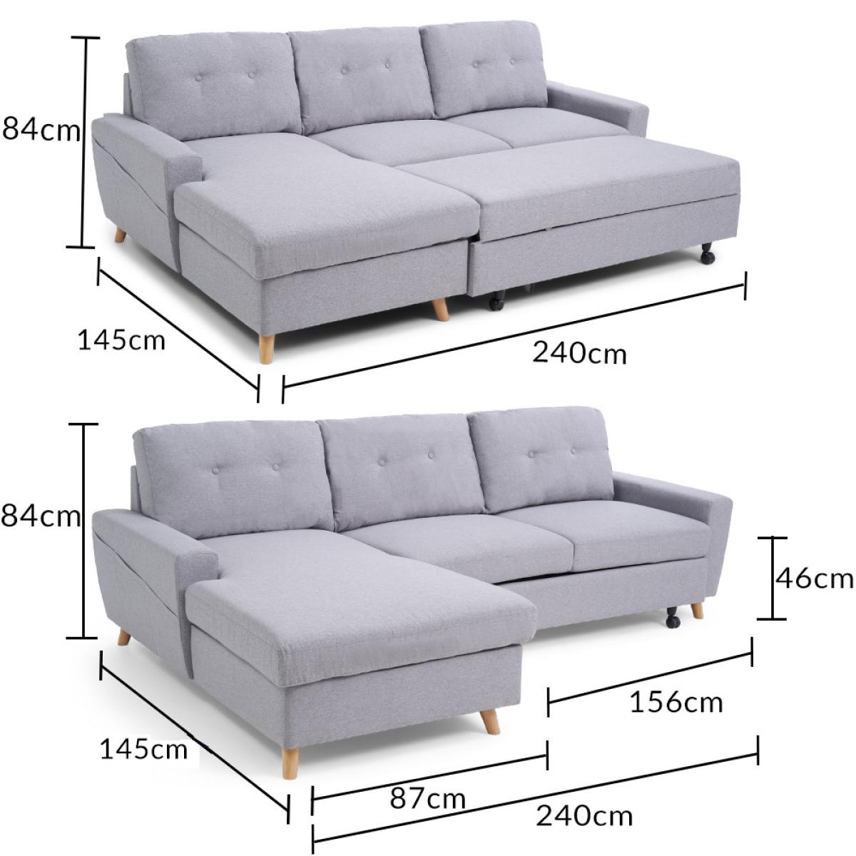 Modern and retro in its simple silhouette, the Constance Chaise Double Sofa Bed is upholstered in a gorgeous light and cool Grey Linen, with softly curved but clean lines, and a Left Facing Chaise sofa section that folds down into a separate bed. With tapered wooden legs, plump cushions and retro tufted stitching to its back. Minimal and versatile in design. Plump padded cushioned seats are deep and comfy. A slot to the side offers storage for magazines and papers A left hand chaise section folds down to the back to turn into a bed element. Removable back cushion covers. Also available: Constance Grey Linen Right Facing Chaise Sofa Bed, Constance Grey Velvet Left Facing Chaise Sofa Bed, Constance Grey Velvet Right Facing Chaise Sofa Bed Additional Measurements:Seat Depth:72cm Seat Height:10cm Armrest Width:15cm Backrest Height:32cm Floor to Seat Height:45cm Leg Thickness:4cm. Chaise Depth:150cm. Chaise Cushion Depth:137cm