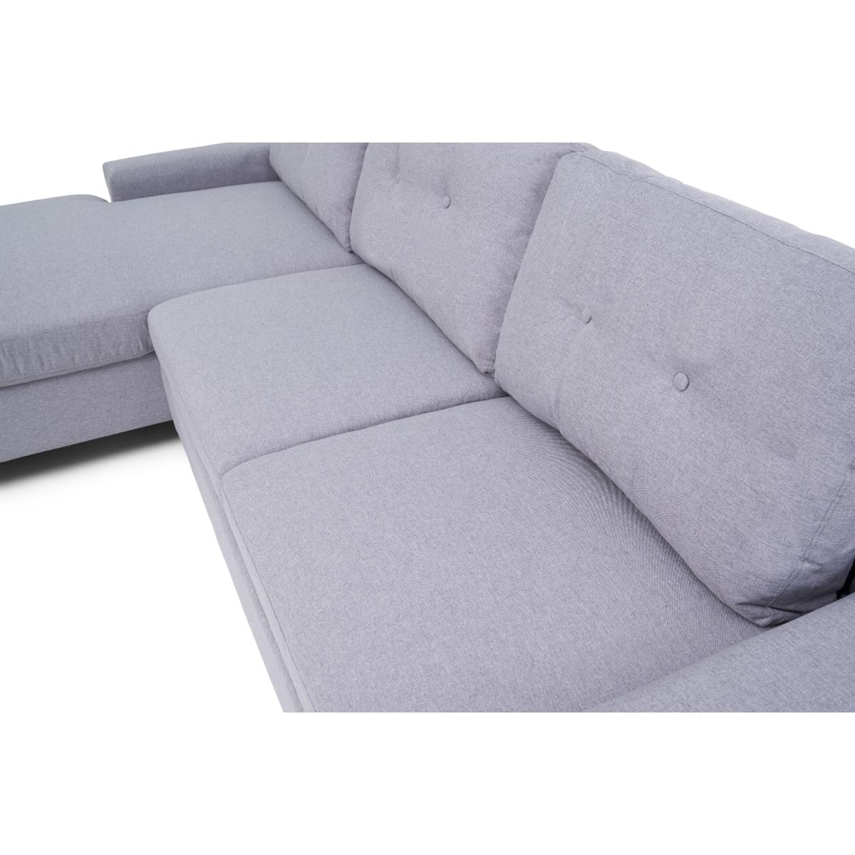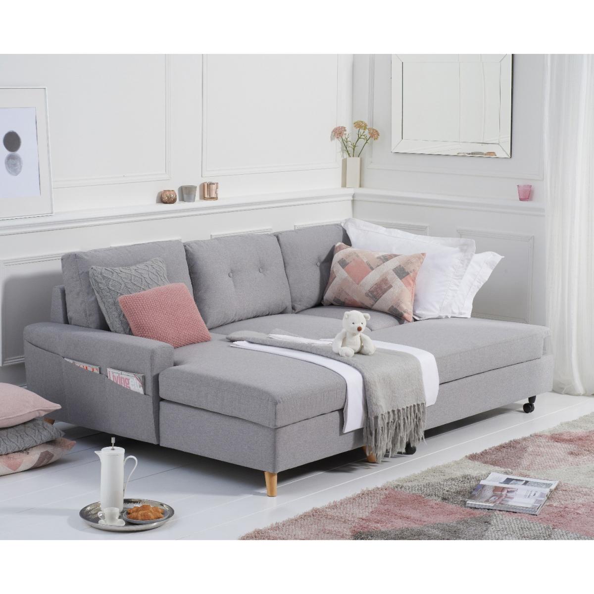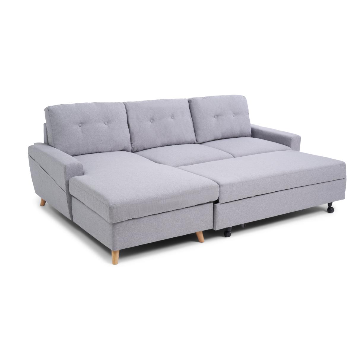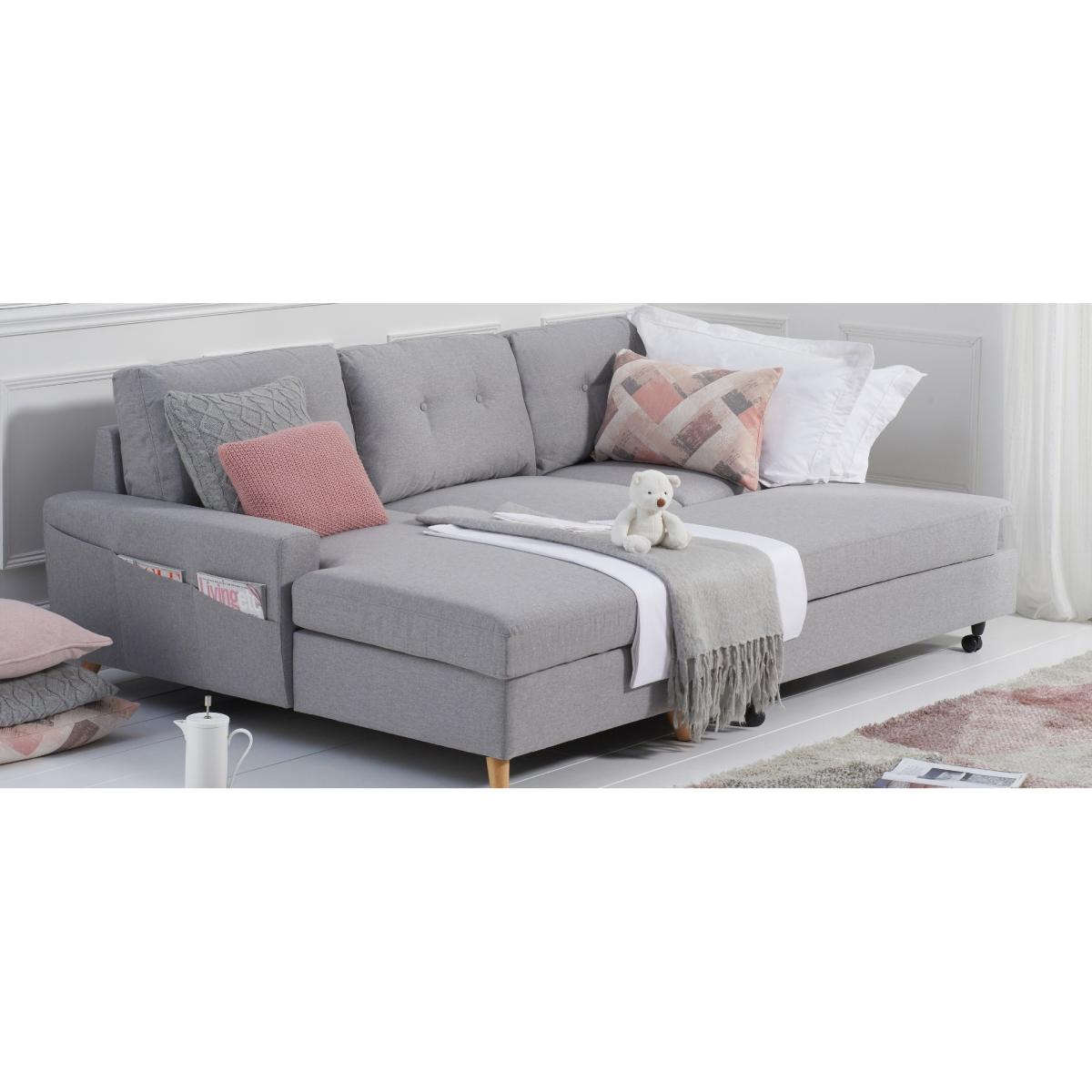 Modern and retro in its simple silhouette, the Constance Chaise Double Sofa Bed is upholstered in a gorgeous light and cool Grey Linen, with softly curved but clean lines, and a Left Facing Chaise sofa section that folds down into a separate bed. With tapered wooden legs, plump cushions and retro tufted stitching to its back. Minimal and versatile in design. Plump padded cushioned seats are deep and comfy. A slot to the side offers storage for magazines and papers A left hand chaise section folds down to the back to turn into a bed element. Removable back cushion covers. Also available: Constance Grey Linen Right Facing Chaise Sofa Bed, Constance Grey Velvet Left Facing Chaise Sofa Bed, Constance Grey Velvet Right Facing Chaise Sofa Bed Additional Measurements:Seat Depth:72cm Seat Height:10cm Armrest Width:15cm Backrest Height:32cm Floor to Seat Height:45cm Leg Thickness:4cm. Chaise Depth:150cm. Chaise Cushion Depth:137cm