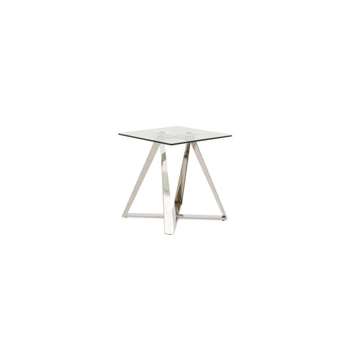 Striking designer lamp table in glass and steel. Dramatic, angled matt black or polished steel base. Versatile in many different styles of interior. The Constellation lamp table is a beautifully precision-engineered work of art. Its square, tempered glass top rests on a black or polished stainless-steel base which is dramatically angled and almost sculptural. Choose the finish that suits your colour scheme best and it will fit beautifully into so many different styles of interior – from classic through to ultra-modern. This designer glass lamp table is made from the finest materials, and is incredibly versatile. Use it as a lamp table to brighten up a corner or as a side table, where it could sit beside your favourite armchair or sofa. For a chic and coordinated look, pair it with the matching console table or coffee table in the Constellation range. Glass surfaces under direct light can reveal the polishing process in the form of small scratches. Tempered glass should be moved carefully. Coasters are recommended.