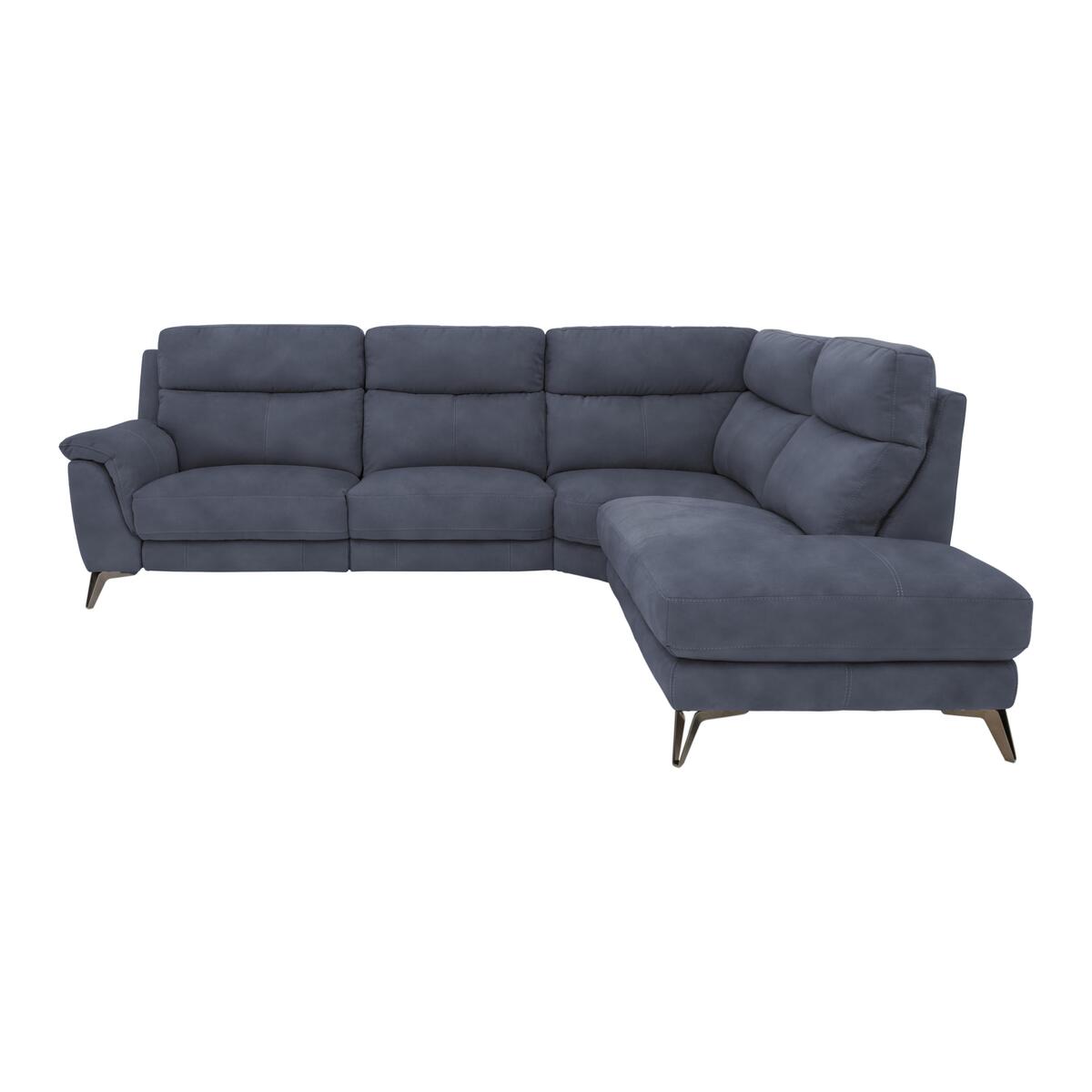With its high supportive backs and clean contemporary lines, the Contempo range of power recliner sofas and chairs is the smoothest way to ease into comfort. The pocket sprung seats and foam and fibre cushioning ensure that these generously-proportioned sofas and chairs with integrated headrests and padded armrests are wonderfully supportive. They’re also wonderfully stylish, thanks to the modern open-base recliners and sleek metal feet. Select from a wide range of colours for the soft-touch fabric. Its modular design means you can mix and match with pieces from across the range. Exclusive to Furniture Village, the classic back sofas and chairs in the Contempo range are also available without recliners. Large, incredibly roomy, supportively comfy and stylish too. This large modular corner sofa with chaise end, ‘wall away’ power recliners and supportive pocket sprung seats has it all. Why you’ll love it. Wonderfully roomy, with an open base and modern metal legs. Choose with smooth ‘wall away’ power recliners or no recliners. Super comfy pocket sprung seats. Cool contemporary style with an open base and metal legs. Contemporary, modular design. High backs for comfort from top to toe. Super-soft fabric upholstery. Luxury fibre-filled back cushions. Sumptuous padded headrests and arm cushions. Exclusive to Furniture Village at a fantastic value price. What you need to know. Firm, supportive comfort level. Pocket sprung seat interiors, foam wrapped and topped with luxury fibre. Strong solid hardwood frame, removable metal legs. Some fabrics can show wear on areas of more use or in direct sunlight. Please read our upholstery care guide for more advice. Allow time for recliners to settle. Minor gaps for motion vary by floor type. Part of the fully modular Contempo range.