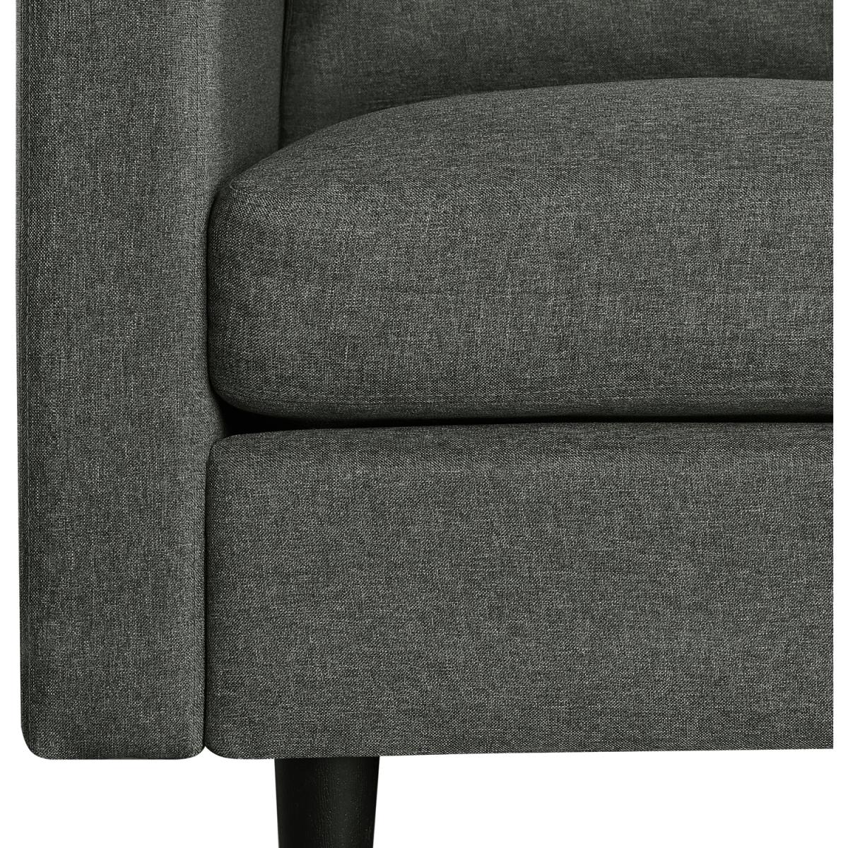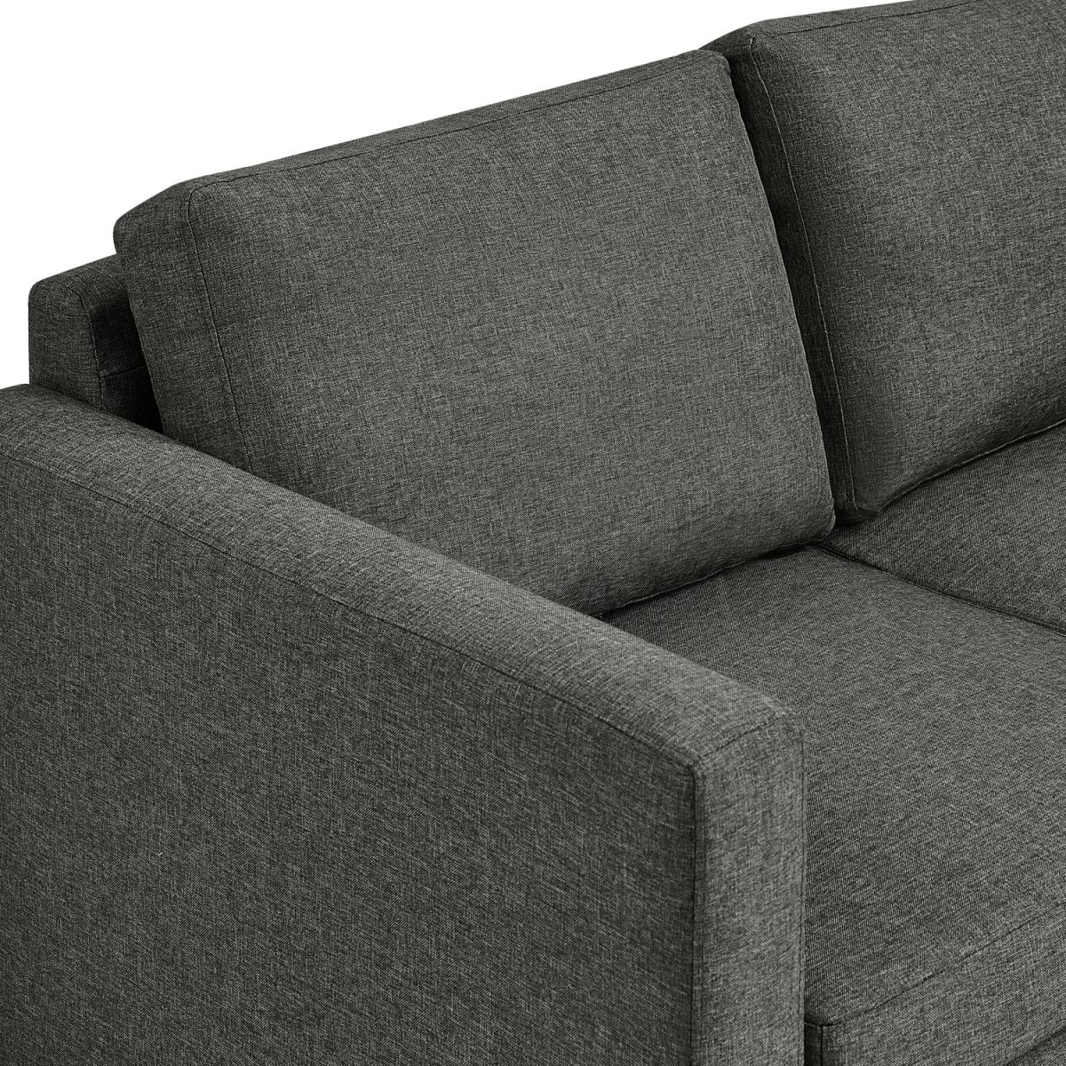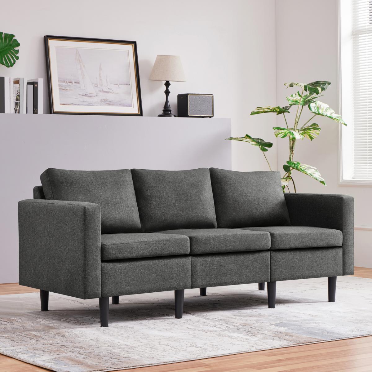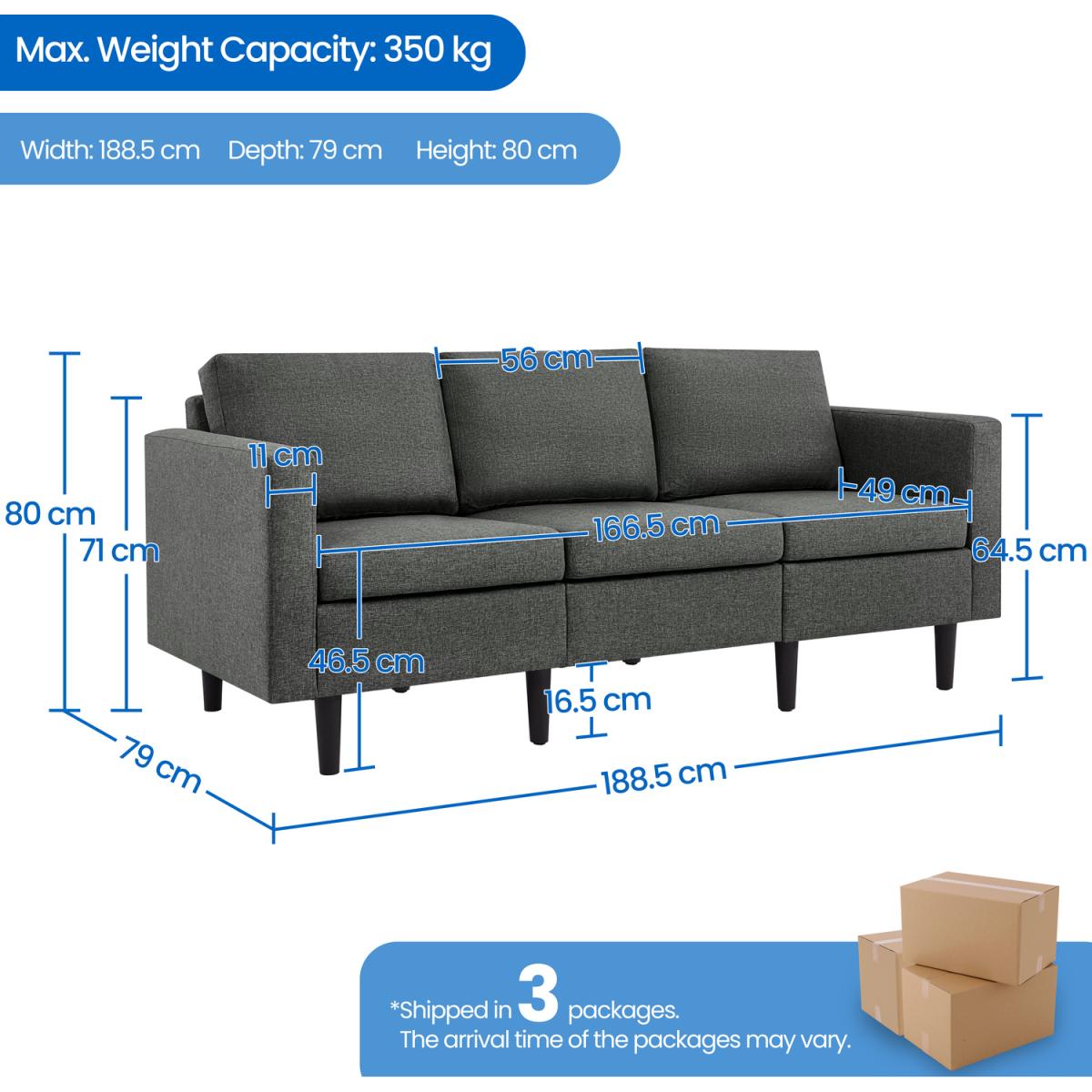 This 3-seater sofa has a sleek and modern design that draws inspiration from the mid-century era. It can easily complement most modern home decors with its clean-lined look. Solidly built with a manufactured wood frame and durable linen-like polyester fabric upholstery, this sofa boasts resilient foam-filled seats and plush back cushions ready for years of comfort. The covers of the seat and back cushions are removable and can be easily machine-washed, making it easier to maintain the sofa's pristine condition.