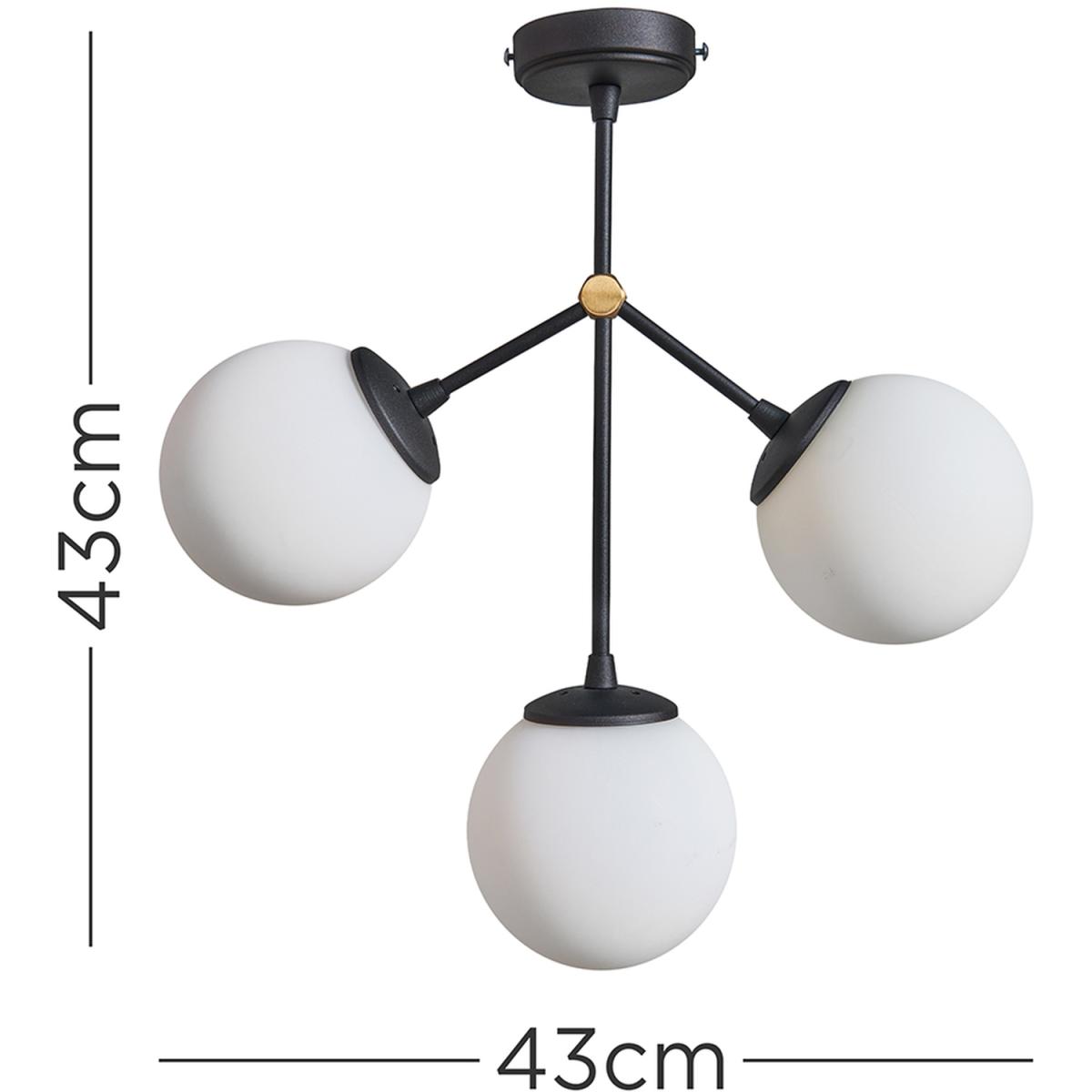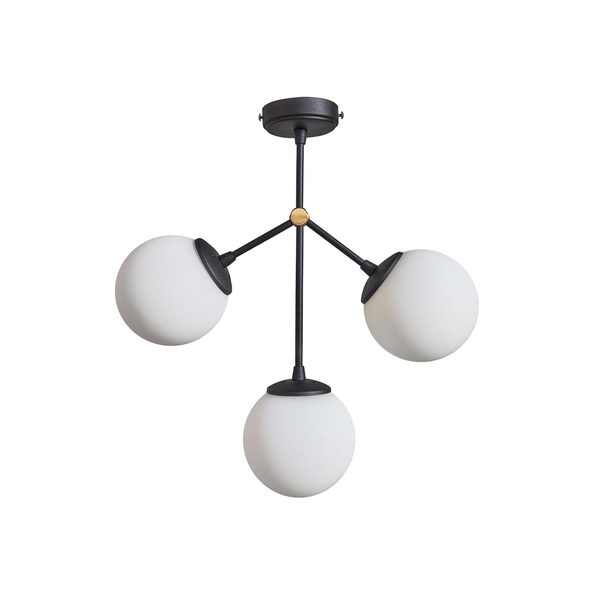 Contemporary 3 Way Matt Black Stem Ceiling Light With White Glass Globe Shades - Black