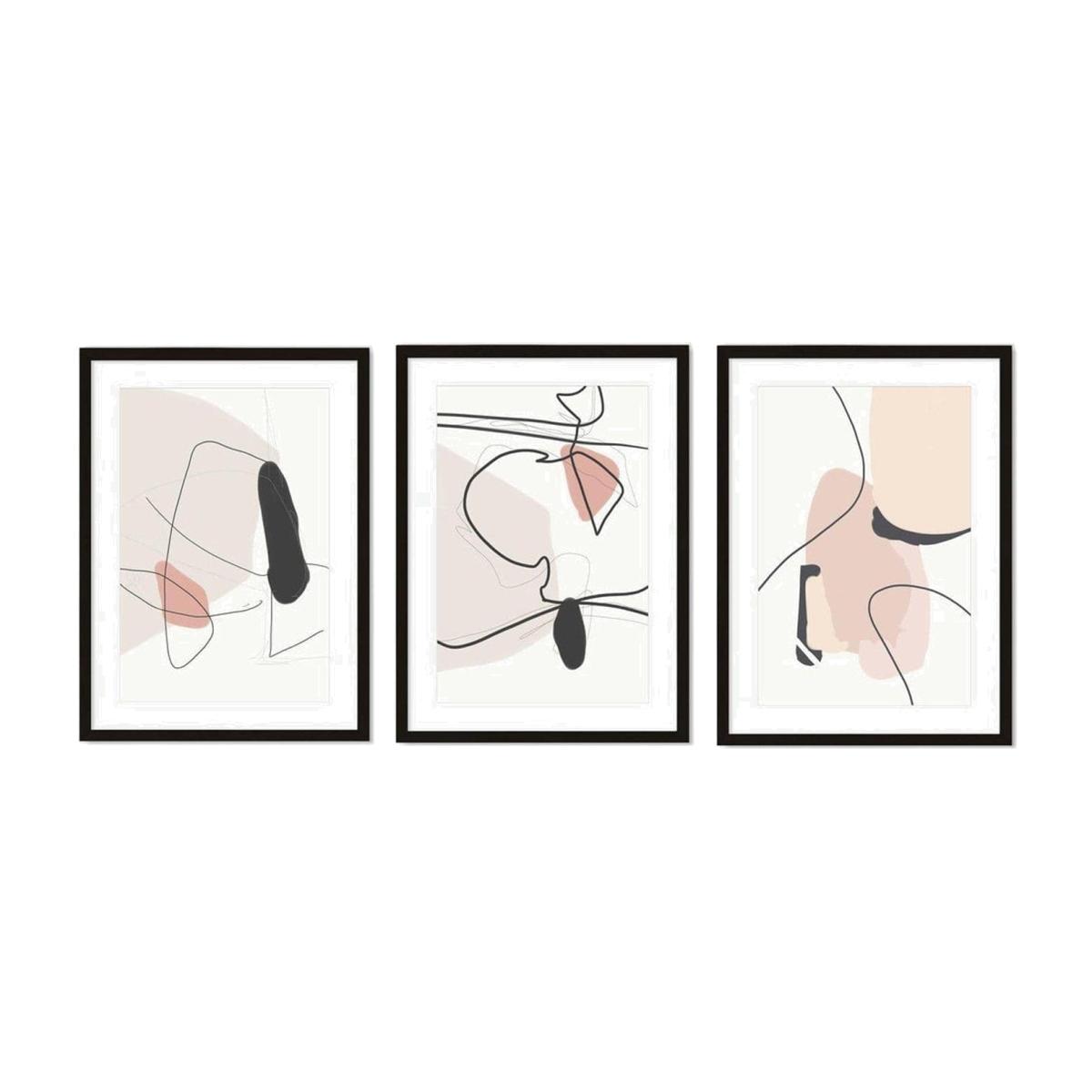 These contemporary abstract shapes set of three framed prints will add a unique touch of style to any room in your home. The colourful eye-catching illustration perfectly complements a variety of home interiors. Printed on fine art paper with excellent colour reproduction and fade resistance. The artwork comes framed and ready to hang in a solid wood frame with black finish and a white mount included. The size of each framed print is W44 x H54 cm, measurements for the set are W132 x H54 cm.