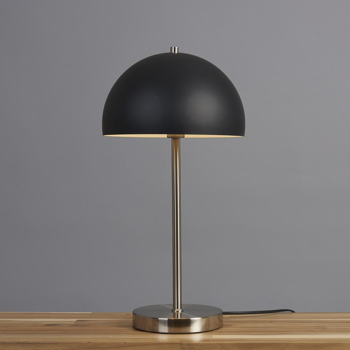 Contemporary Satin Nickel And Matt Black Dome Table Lamp - Brushed Chrome
