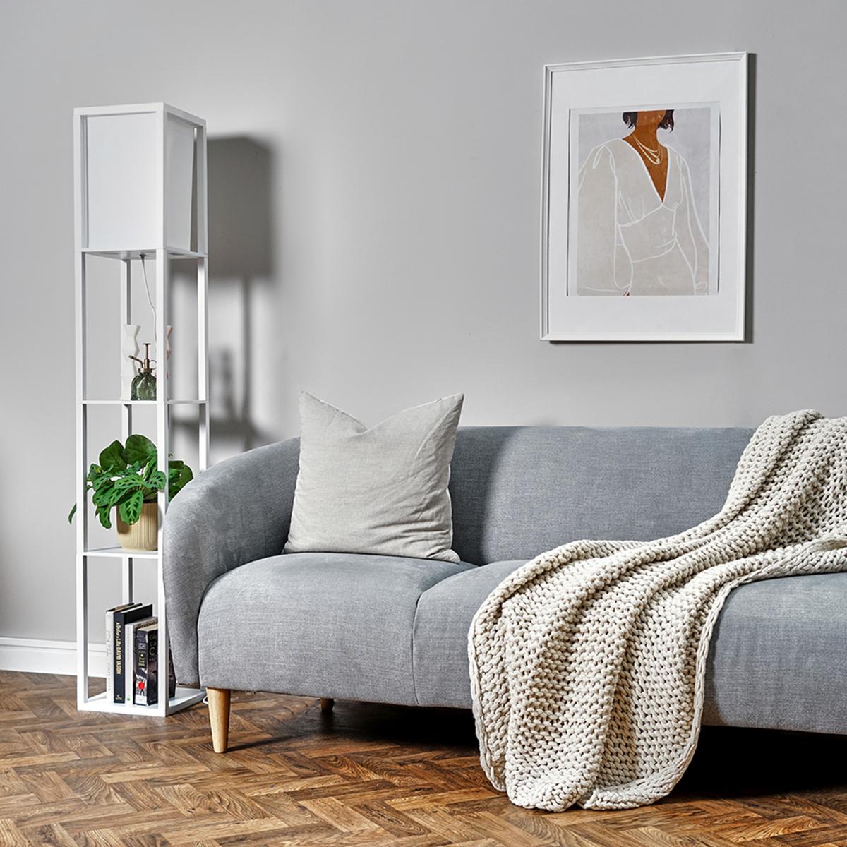 I love this floor lamp because of its sleek, minimalist design that combines functionality with modern style. The white wooden shelving adds practicality, allowing it to serve as both a source of ambient light and a stylish storage or display space. It works particularly well in contemporary interiors, Scandi-inspired spaces, or light-filled living rooms where clean lines are key. For styling tips, consider placing decorative books, plants, or ceramics on the shelves to soften the look, and position it near seating areas to create a cosy yet open atmosphere. Its neutral palette makes it versatile and easy to integrate with other colour schemes or textures in your scheme.