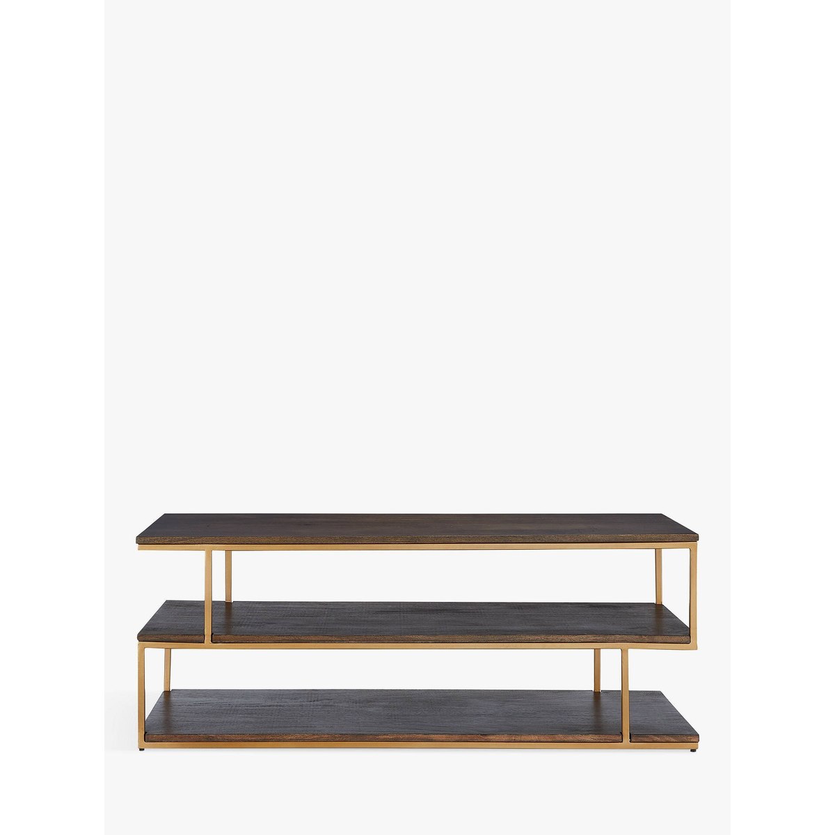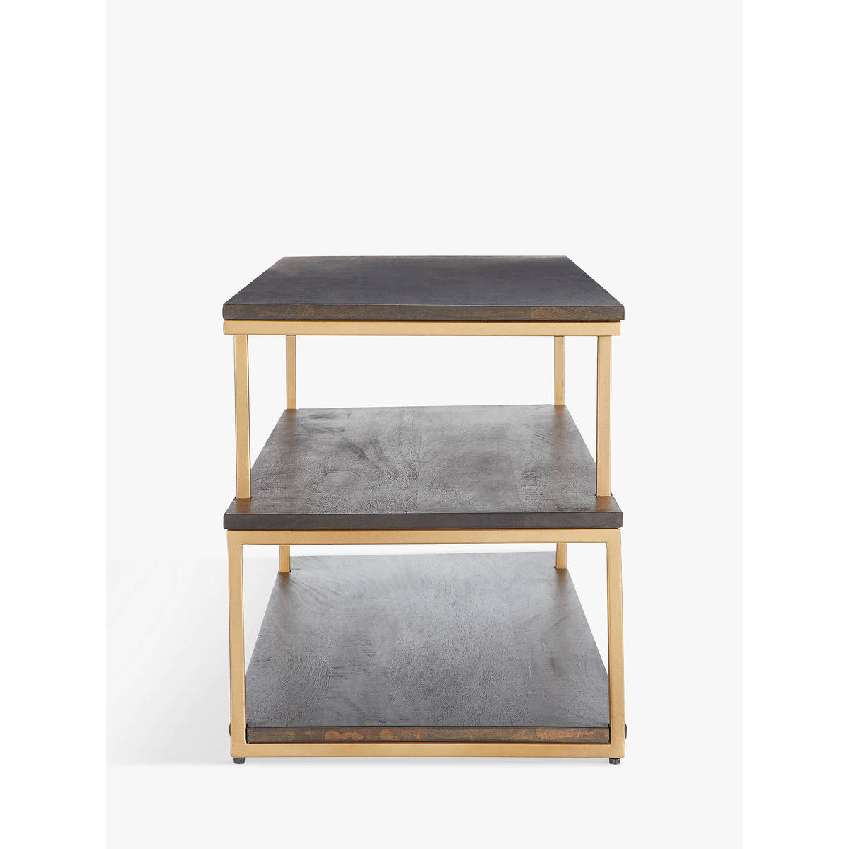 With bold brass hardware that forms the geometric-style shaping of this Balance coffee table, this piece is equally suited as a lounge centre piece or smaller shelving unit. Crafted from sleek mango wood that is stylishly complemented by the industrial tones of the brass detailing, it's a practical piece for your living space and will introduce a touch of art-deco aesthetic. Created by Terence Conran, the comprehensive Content range features clean-lined, contemporary furniture for relaxed living. The distinctive pieces are designed to work in a variety of living spaces and are available in a wide choice of styles, sizes and materials.