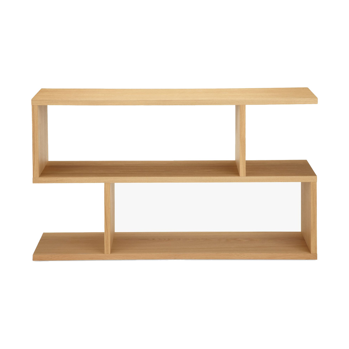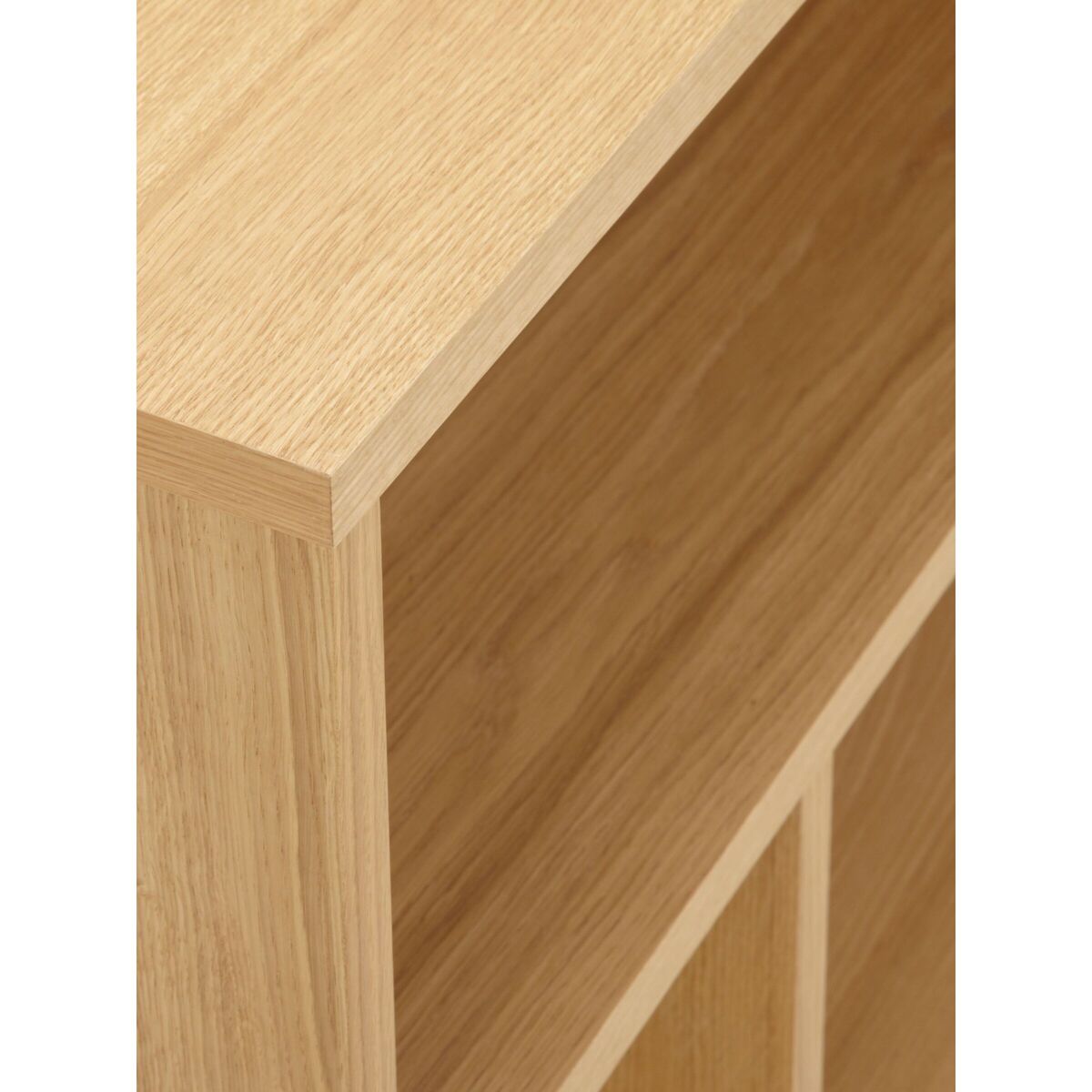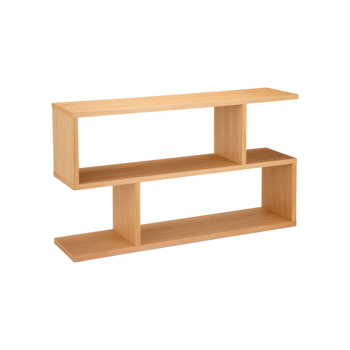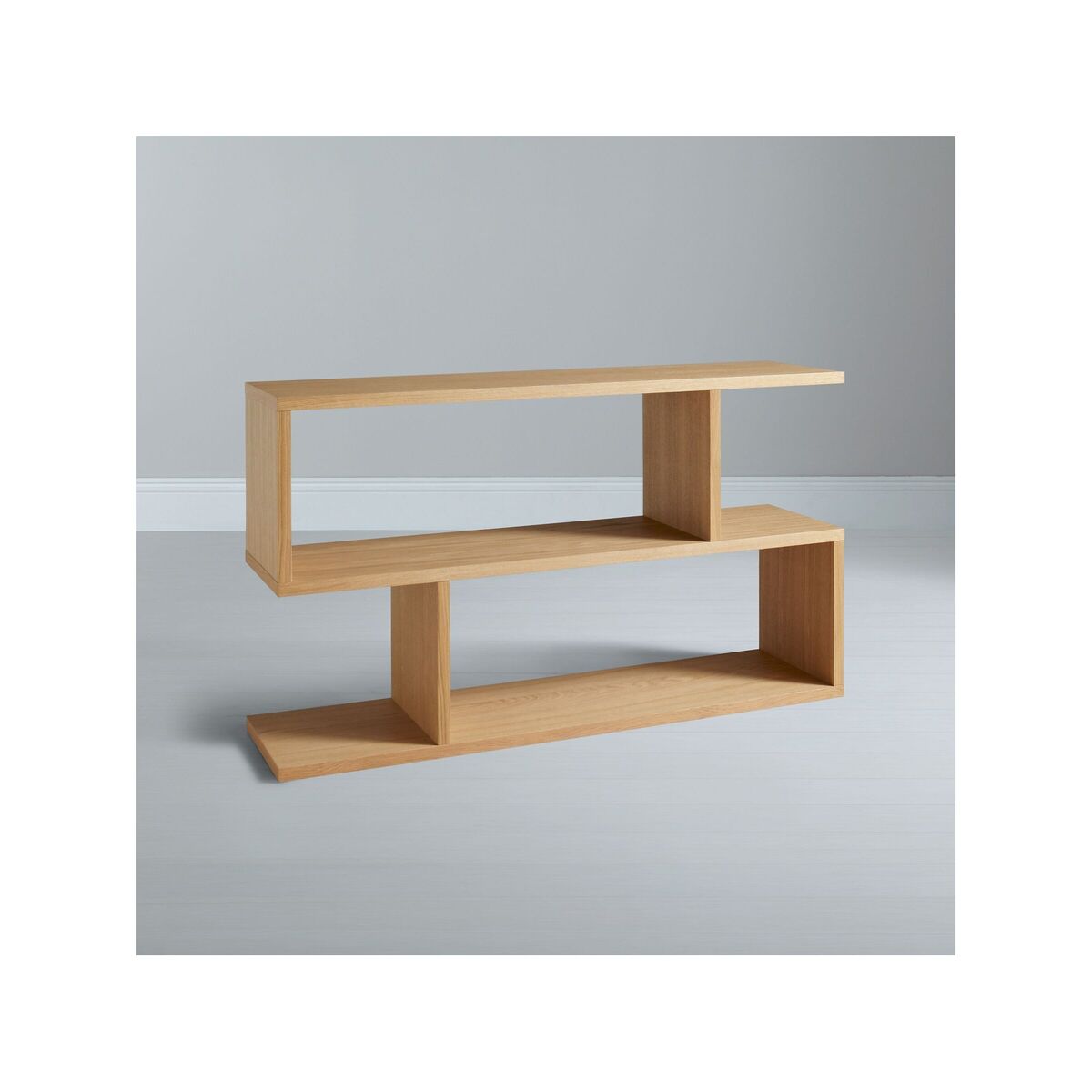 Curate a contemporary interior with modern, minimalist furniture that draws the eye. This console table is made from responsibly sourced oak veneer on chipboard in a natural finish and its sleek, geometric structure features two large shelf sections. It's supplied fully assembled so set it up and style it your way, with your favourite books, decorative items and ornaments. Want to see it first? You may want to see and get a feel for the furniture in one of our shops before ordering. We'll be able to tell you where the range you'd like to view is on display.