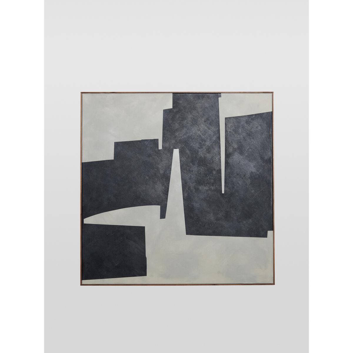 Founded by Jon Llewelyn in 2016, Formworks Studio drawsinspiration from bold, geometric styles found in mid-centuryarchitecture, furniture design, graphic art, and the Bauhausmovement. Llewelyn's pieces embrace the free and explorativecreative process, often challenging the viewer's sense ofperception, depth, and space. 'Contrast 02' by Formworks Studio. Acrylic and charcoal on cotton canvas. Blackened walnut frame. Exclusive piece. From the M. A. H Gallery collection.