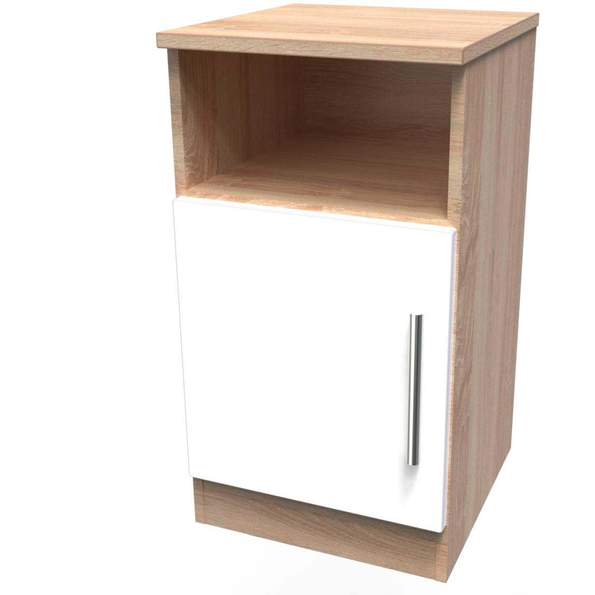 Contrast 1 Door Bedside Cabinet White Gloss Bardolino - White Gloss / Bardolino