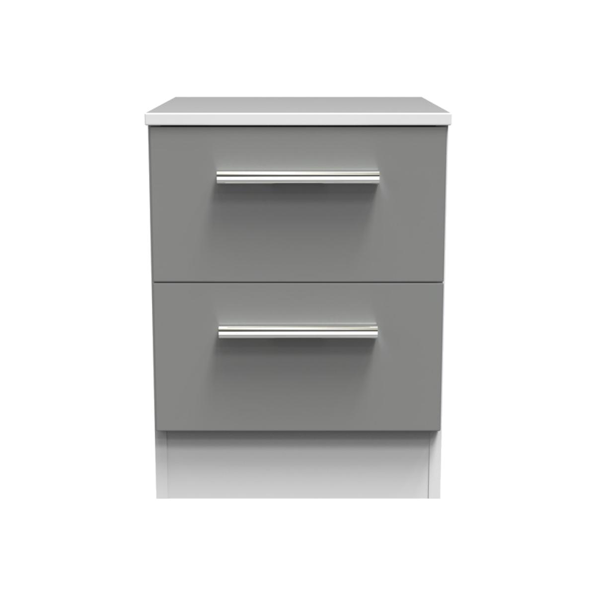 This 2 drawer bedside cabinet is practical and stylish. Perfect for any bedside or as a free standing storage unit. Create your dream bedroom with our exclusive Contrast range. This range enhances the beauty of any bedroom style. This range is made up of high-quality materials long-lasting finishes. The fronts are complemented by sleek designer-style metal handles and when you open the drawers, you'll notice the smooth metal runners and linen-look interior. All our furniture is made in the United Kingdom, to the highest quality. It is delivered direct to your location of choice by one of our two man delivery teams, and come full assembled (although legs may be removed to prevent damage in transit).