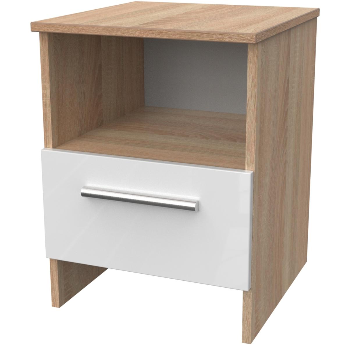 This compact sidelamp table includes a sturdy storage drawer and is perfect for any room. Create your dream bedroom with our exclusive Contrast range. This range enhances the beauty of any bedroom style. This range is made up of high-quality materials long-lasting finishes. The fronts are complemented by sleek designer-style metal handles and when you open the drawers, you'll notice the smooth metal runners and linen-look interior. All our furniture is made in the United Kingdom, to the highest quality. It is delivered direct to your location of choice by one of our two man delivery teams, and come full assembled (although legs may be removed to prevent damage in transit).