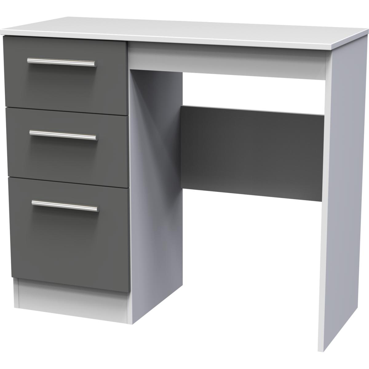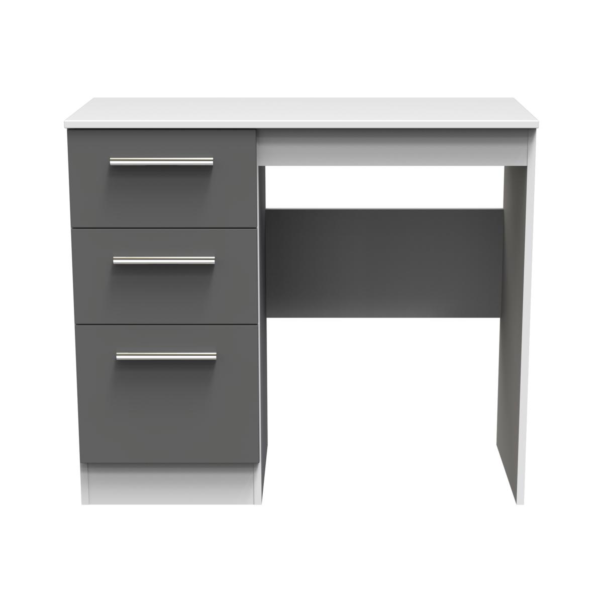 This practical 3 drawer narrow deskvanity is perfect for any bedroom or office. A matching stool and mirror (in 2 sizes) are also available. Create your dream bedroom with our exclusive Contrast range. This range enhances the beauty of any bedroom style. This range is made up of high-quality materials long-lasting finishes. The fronts are complemented by sleek designer-style metal handles and when you open the drawers, you'll notice the smooth metal runners and linen-look interior. All our furniture is made in the United Kingdom, to the highest quality. It is delivered direct to your location of choice by one of our two man delivery teams, and come full assembled (although legs may be removed to prevent damage in transit).