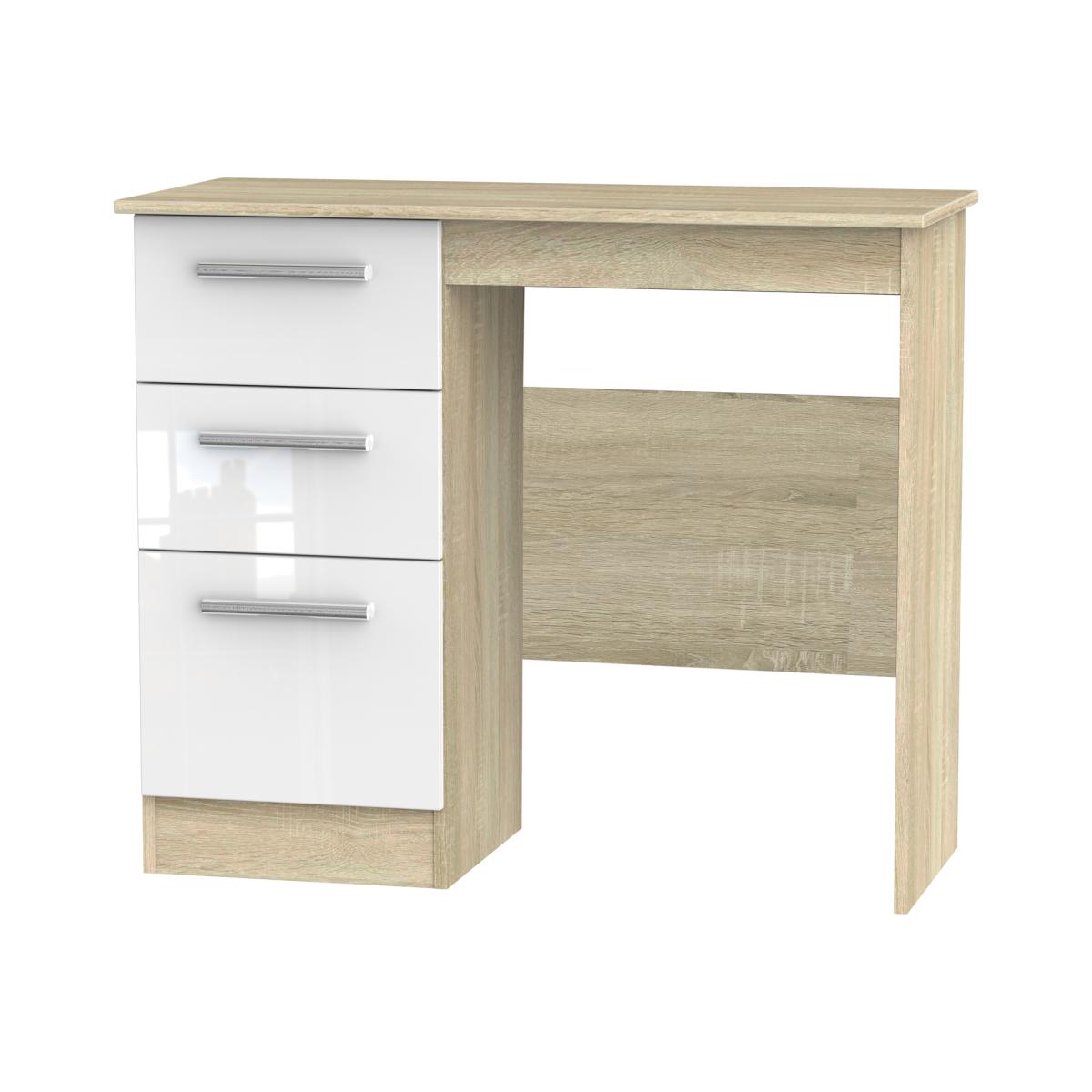 This practical 3 drawer narrow deskvanity is perfect for any bedroom or office. A matching stool and mirror (in 2 sizes) are also available. Create your dream bedroom with our exclusive Contrast range. This range enhances the beauty of any bedroom style. This range is made up of high-quality materials long-lasting finishes. The fronts are complemented by sleek designer-style metal handles and when you open the drawers, you'll notice the smooth metal runners and linen-look interior. All our furniture is made in the United Kingdom, to the highest quality. It is delivered direct to your location of choice by one of our two man delivery teams, and come full assembled (although legs may be removed to prevent damage in transit).
