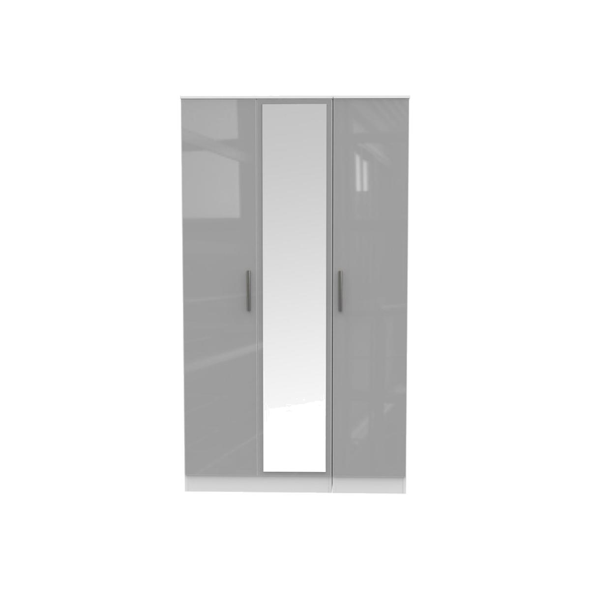 Contrast Triple Mirrored Wardrobe in Grey Gloss White - Grey Gloss & White