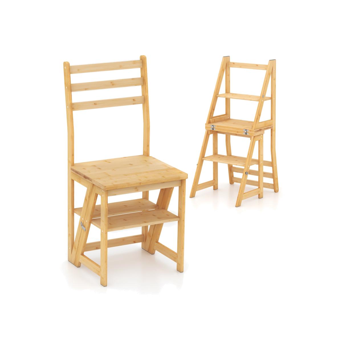 This folding step ladder chair effortlessly transforms from a comfortable chair to a sturdy ladder, with secure locks ensuring your safety. Crafted from natural bamboo, this multifunctional furniture piece is resistant to wear, cracking, and fading, making it a reliable addition to your home. With a weight capacity of 150 kg, it can be used as a chair, ladder, plant stand, nightstand, or display stand, adding a touch of versatility to any room. Convertible Step Stool and Chair with Safety Locks for Adults - Brown