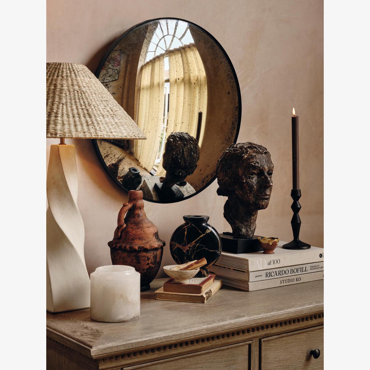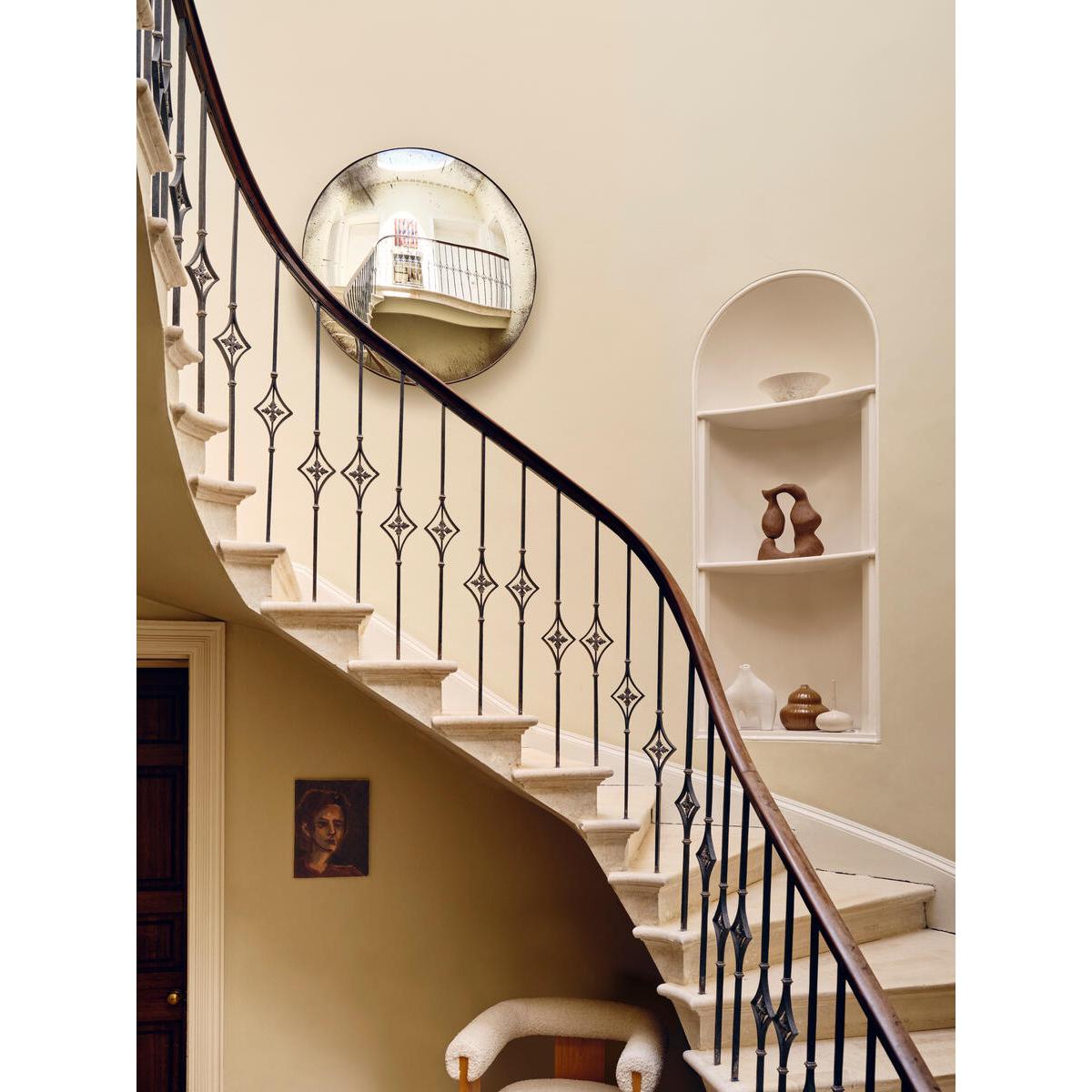 Sean Phelan began his craft on Lillie Road, Fulham in the 90s, gilding and restoring 17th-20th Century mirrors. With a growing passion for decorative interiors, he later began designing contemporary pieces. This led to his Art Deco-influenced collection of convex mirrors, where the curved glass plate of this style beautifully disperses light outwards, energising a room and bringing it to life. One of Phelan's bespoke convex designs hangs in our Main Barn at Soho Farmhouse. The Convex Bronze Edge Mirror in Aged Silver has a bright plate with a wonderful dappled foxed finish. Both versatile and timeless, it suits many settings, from traditional to contemporary. Medium Convex mirror Handmade, aged mirror-plated design Designed by Sean Phelan at Mirror Gilding Measures 60cm x 60cm x 5cm