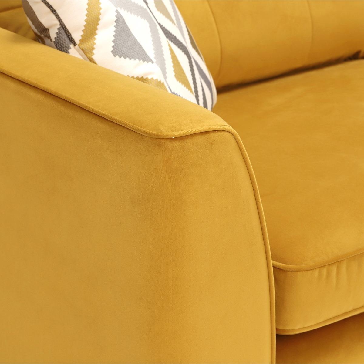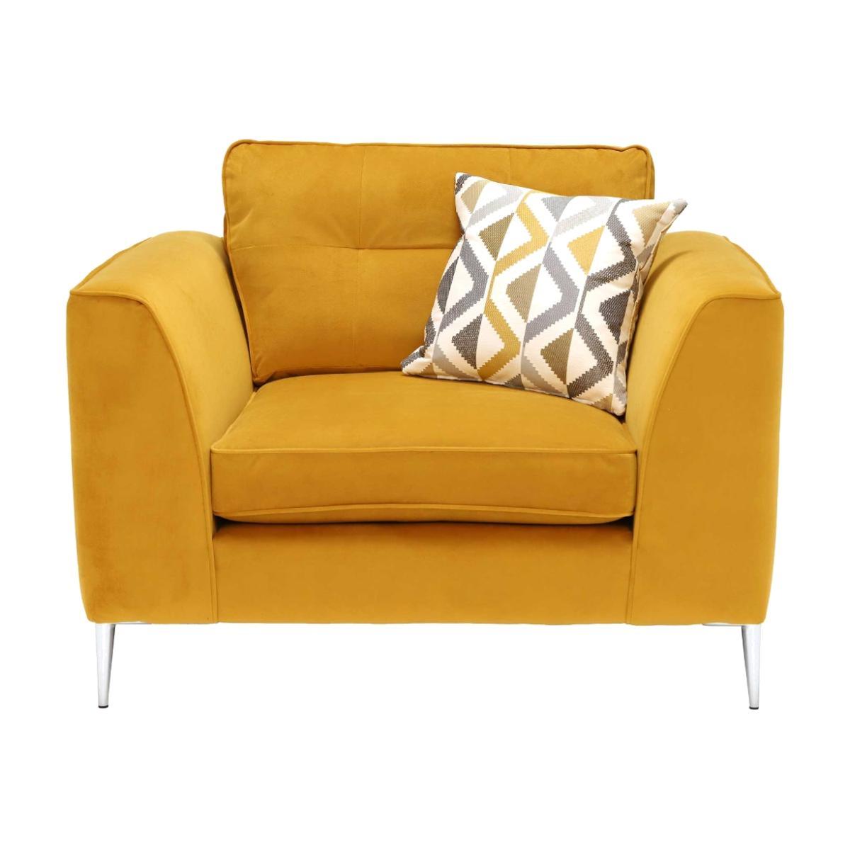 Design. Perfect for those forgotten cosy corners of the home, the Conza Chair’s modern style is a great choice for living areas, conservatories, hallways and bedrooms. A contemporary elegance through plush velvet upholstery that definitely won’t go unnoticed, the Conza’s buttonless tufting and curvaceous arms add a softness to its design that offers a vibe of snug comfort. Coming with a geometric feather filled scatter available in a range of fabrics, an extra touch of comfy support is always close to hand.