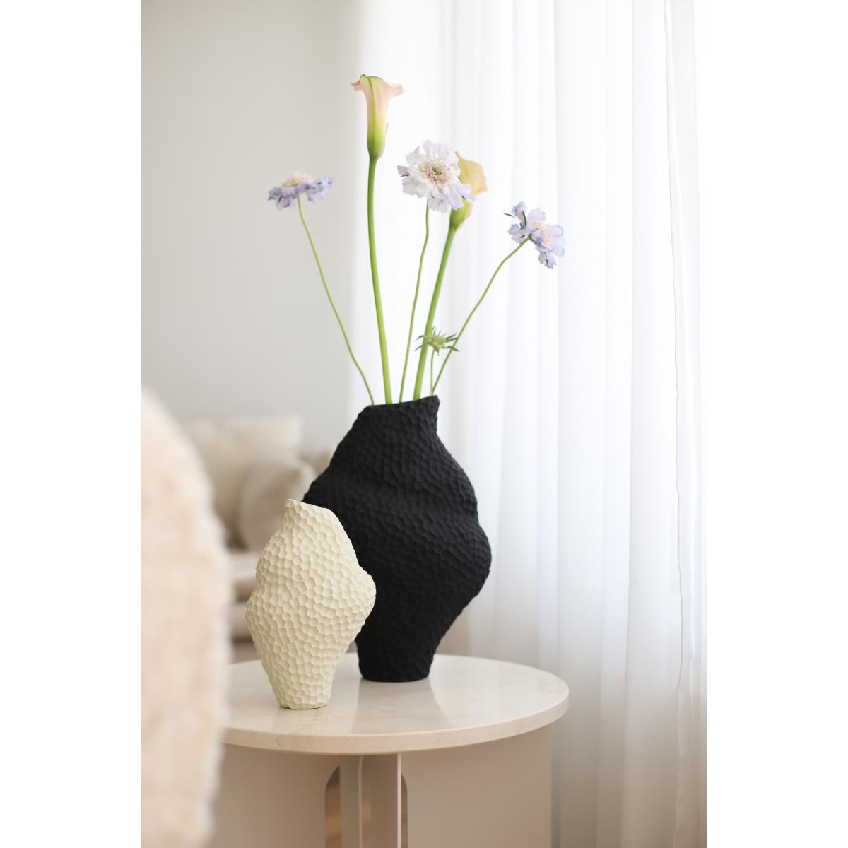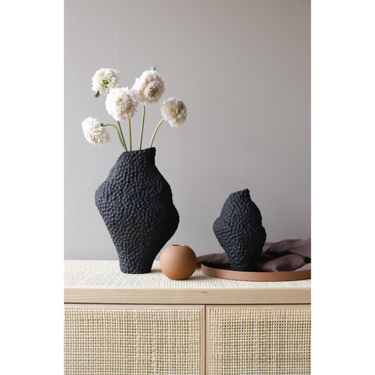 I love the Cooee Design Isla vase for its striking textured surface and bold black finish, which makes it a versatile statement piece. It works especially well in modern or minimalist interiors, where its sculptural form can be highlighted against neutral backgrounds. For practical styling, I recommend using it with tall, architectural floral arrangements or letting it stand alone as a standalone sculpture on a console or coffee table. Its sizeable 32cm height makes it ideal for drawing the eye in larger spaces or as a focal point in open-plan rooms, adding texture and interest without overwhelming the decor.