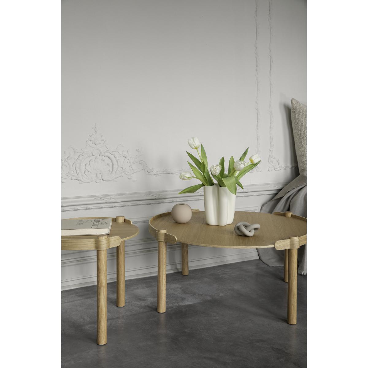 I’m a fan of the Woody side table for its clean, pared-back look and the subtle raised edge that keeps décor items in place. The light oak finish slots seamlessly into Scandi-inspired, Japandi or minimalist urban schemes, and its modest Ø45 cm footprint makes it perfect as a bedside table, plant stand or sofa-side accent. Styling-wise, keep it simple: a low vase or ceramic bowl, a slim glass of water and a small stack of design books look balanced without overcrowding. Its neutral tone also pairs well with darker textiles or a single statement ornament to add contrast.