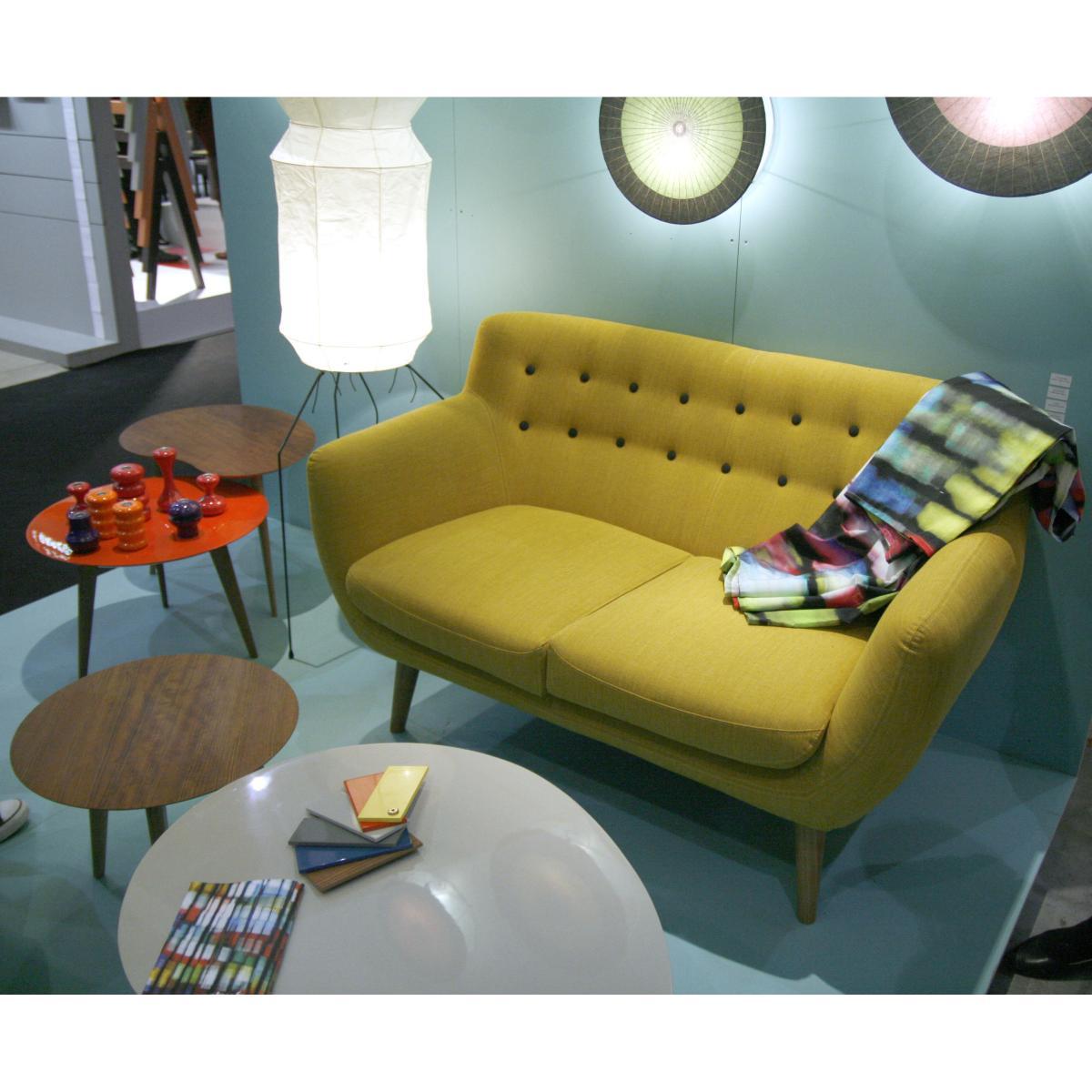 Designed by Sentou, Coogee sofa and armchair combine comfort and elegance in mind 50's trendy. The armrests have a flared original form, welcoming and protective. When you are in front of the saet, it seems to welcome you with open arms! The base of wood brings a final touch to this lovely sofa.