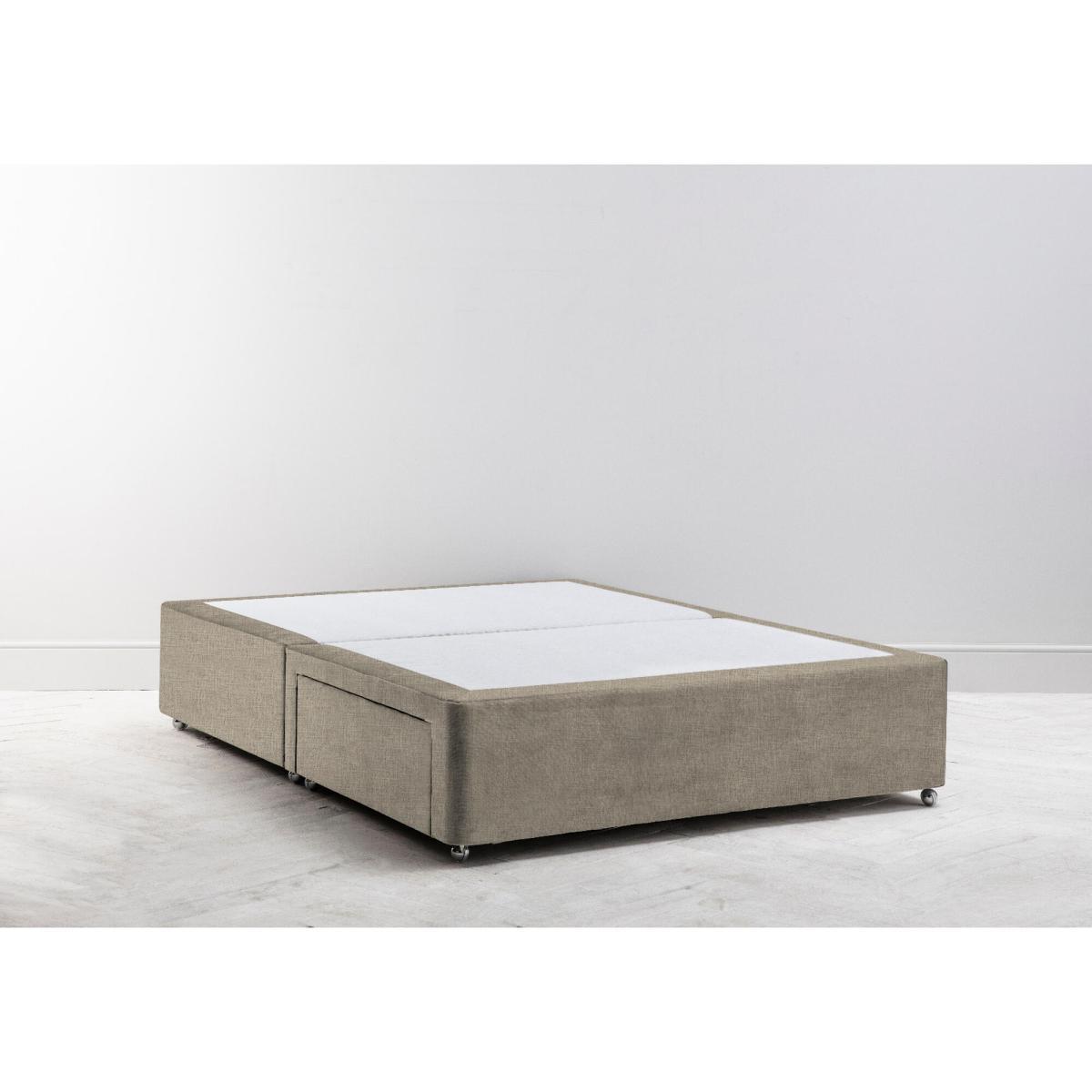 Give your body a heavenly rest every night with the support of our Cook made to order divan. This upholstered single divan has a solid hardwood frame, two sliding drawers for added storage and sturdy metal castors. Available in over a hundred different upholsteries to choose from, each Cook is made to order by hand exclusively for you, and as such, will give a personal, designed look to your bedroom. Give your body a heavenly rest every night with the support of our Cook made to order divan. This upholstered single divan has a solid hardwood frame, two sliding drawers for added storage and sturdy metal castors. Available in over a hundred different upholsteries to choose from, each Cook is made to order by hand exclusively for you, and as such, will give a personal, designed look to your bedroom.