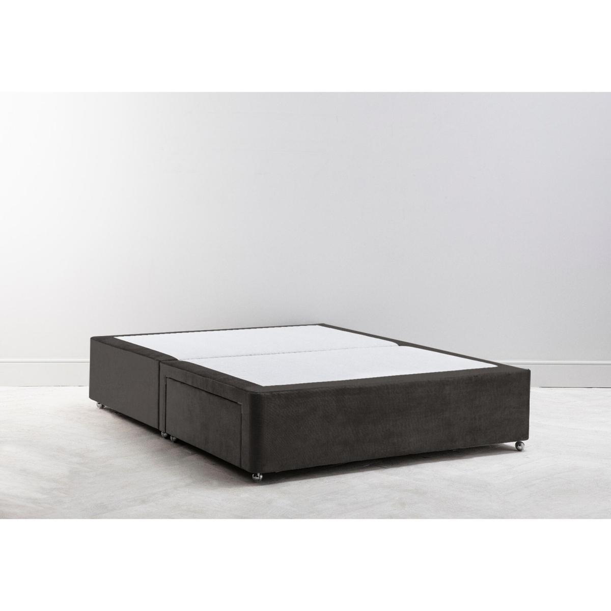 Give your body a heavenly rest every night with the support of our Cook made to order divan. This upholstered double divan has a solid hardwood frame, two sliding drawers for added storage and sturdy metal castors. Available in over a hundred different upholsteries to choose from, each Cook is made to order by hand exclusively for you, and as such, will give a personal, designed look to your bedroom. Give your body a heavenly rest every night with the support of our Cook made to order divan. This upholstered double divan has a solid hardwood frame, two sliding drawers for added storage and sturdy metal castors. Available in over a hundred different upholsteries to choose from, each Cook is made to order by hand exclusively for you, and as such, will give a personal, designed look to your bedroom.