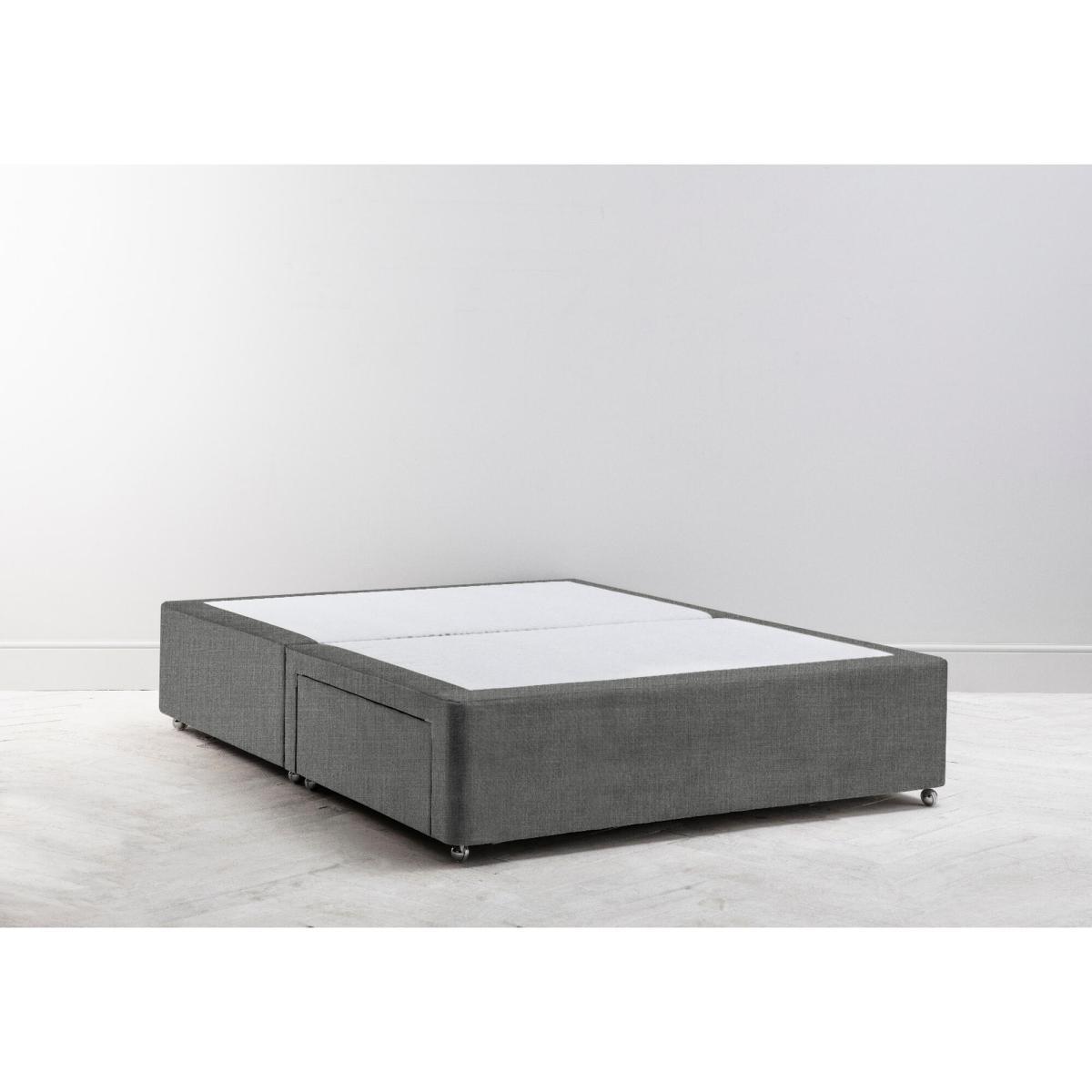 Give your body a heavenly rest every night with the support of our Cook made to order divan. This upholstered double divan has a solid hardwood frame, two sliding drawers for added storage and sturdy metal castors. Available in over a hundred different upholsteries to choose from, each Cook is made to order by hand exclusively for you, and as such, will give a personal, designed look to your bedroom. Give your body a heavenly rest every night with the support of our Cook made to order divan. This upholstered double divan has a solid hardwood frame, two sliding drawers for added storage and sturdy metal castors. Available in over a hundred different upholsteries to choose from, each Cook is made to order by hand exclusively for you, and as such, will give a personal, designed look to your bedroom.