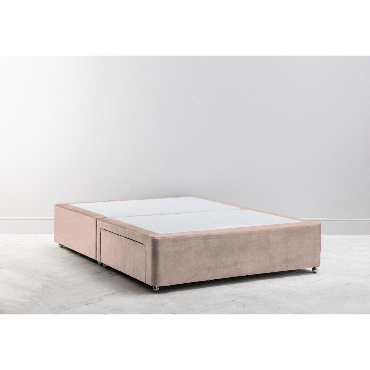 Give your body a heavenly rest every night with the support of our Cook made to order divan. This upholstered double divan has a solid hardwood frame, two sliding drawers for added storage and sturdy metal castors. Available in over a hundred different upholsteries to choose from, each Cook is made to order by hand exclusively for you, and as such, will give a personal, designed look to your bedroom. Give your body a heavenly rest every night with the support of our Cook made to order divan. This upholstered double divan has a solid hardwood frame, two sliding drawers for added storage and sturdy metal castors. Available in over a hundred different upholsteries to choose from, each Cook is made to order by hand exclusively for you, and as such, will give a personal, designed look to your bedroom.