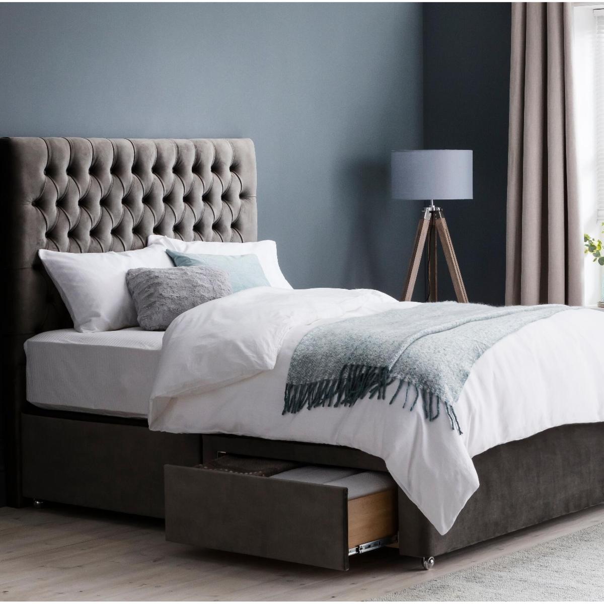 Give your body a heavenly rest every night with the support of our Cook made to order divan. This upholstered double divan has a solid hardwood frame, two sliding drawers for added storage and sturdy metal castors. Available in over a hundred different upholsteries to choose from, each Cook is made to order by hand exclusively for you, and as such, will give a personal, designed look to your bedroom. Give your body a heavenly rest every night with the support of our Cook made to order divan. This upholstered double divan has a solid hardwood frame, two sliding drawers for added storage and sturdy metal castors. Available in over a hundred different upholsteries to choose from, each Cook is made to order by hand exclusively for you, and as such, will give a personal, designed look to your bedroom.