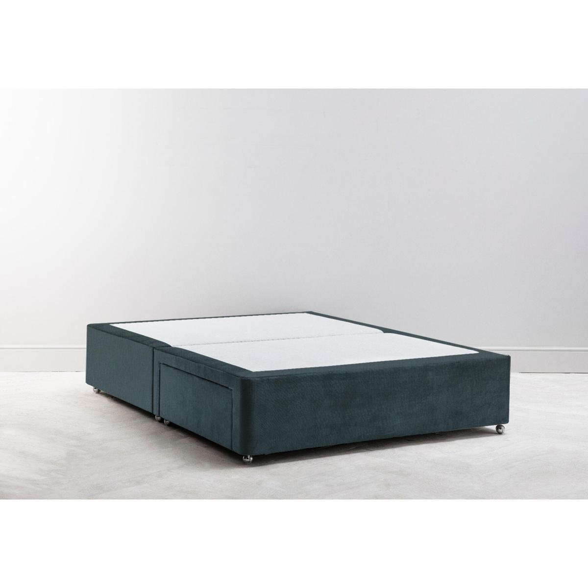 Give your body a heavenly rest every night with the support of our Cook made to order divan. This upholstered king size divan has a solid hardwood frame, two sliding drawers for added storage and sturdy metal castors. Available in over a hundred different upholsteries to choose from, each Cook is made to order by hand exclusively for you, and as such, will give a personal, designed look to your bedroom. Give your body a heavenly rest every night with the support of our Cook made to order divan. This upholstered king size divan has a solid hardwood frame, two sliding drawers for added storage and sturdy metal castors. Available in over a hundred different upholsteries to choose from, each Cook is made to order by hand exclusively for you, and as such, will give a personal, designed look to your bedroom.